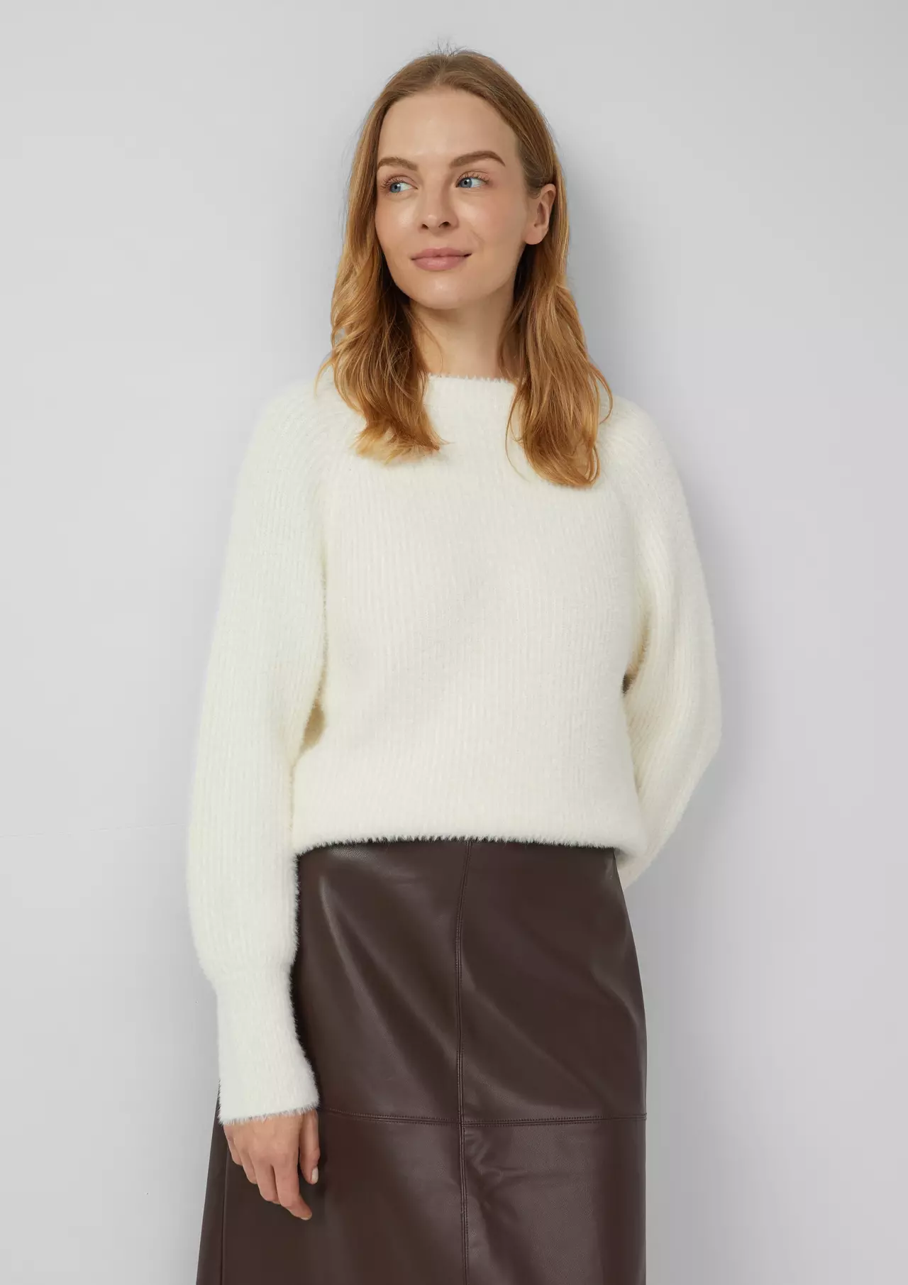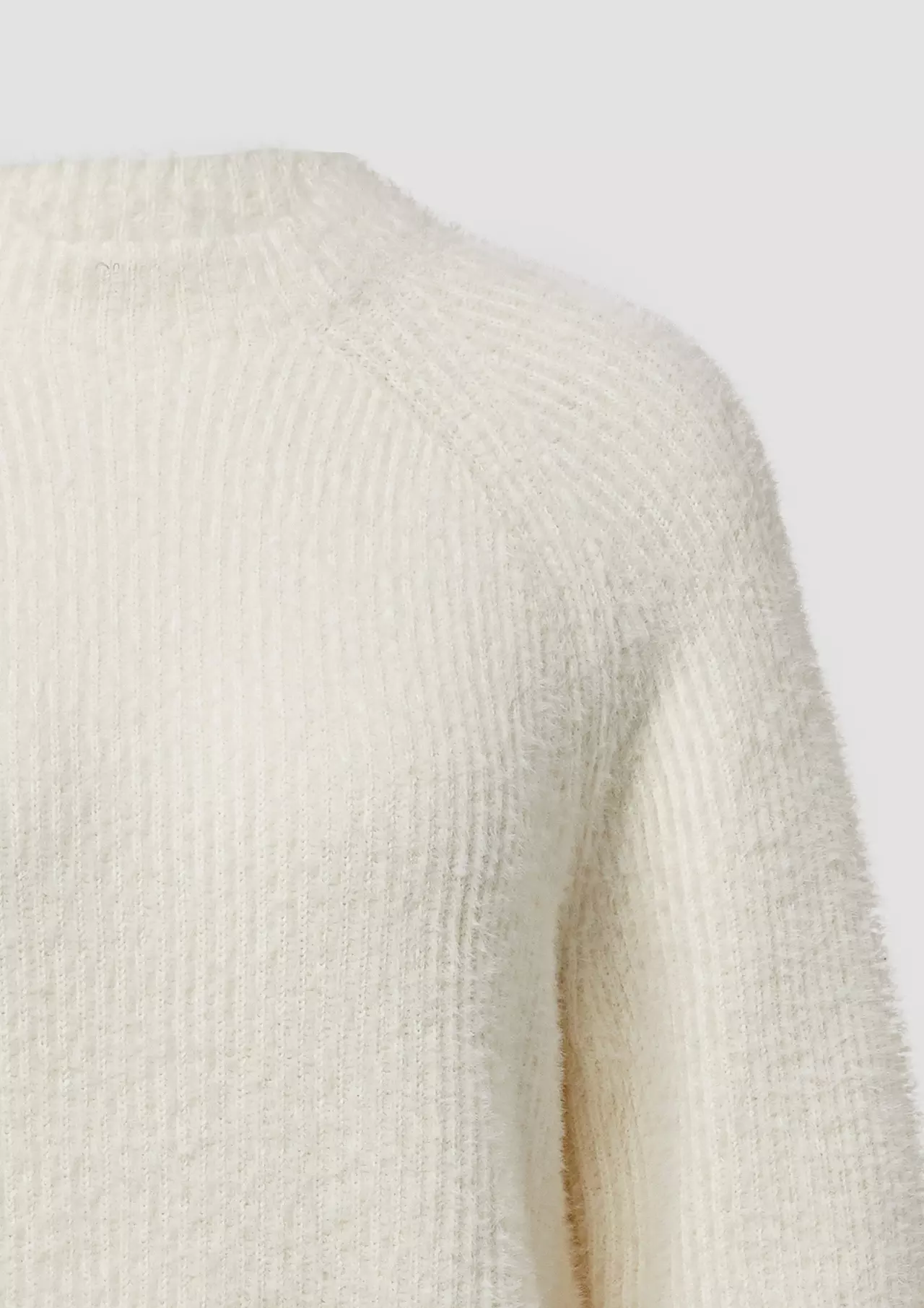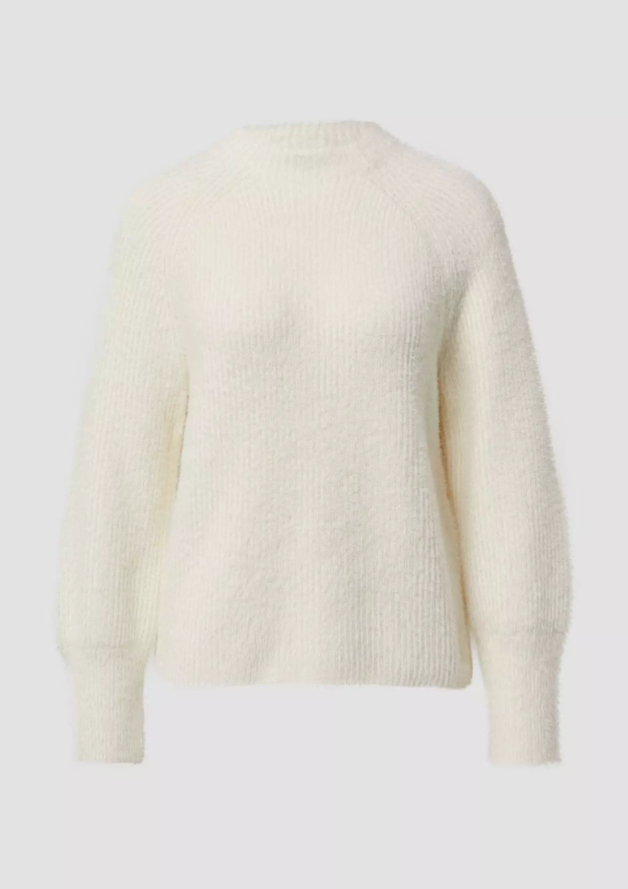 Dieser weiche Strickpullover von S. Oliver in Off White mit stehendem Kragen wird sofort zu deinem Lieblingsstück an kühleren Tagen. Das fluffige Strickmaterial fühlt sich wunderbar an und verleiht jedem Casual-Look eine hochwertige Note. Die langen Ärmel mit Rippenbündchen sorgen für eine gute Passform und halten dich schön warm – perfekt für entspannte Momente. Ein Pullover für stilvolle und gemütliche Looks.