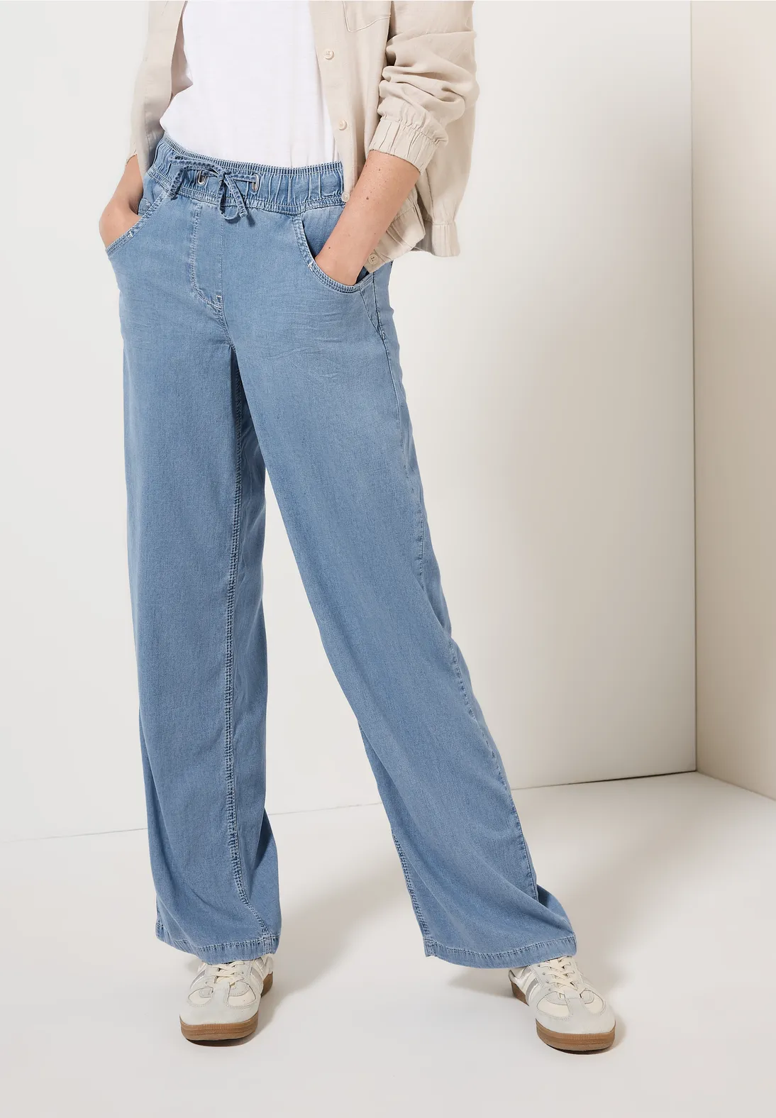 Cecil Neele. Cecil Hose mit Loose Fit, High Waist und weitem Bein. Die Cecil Hose hat einen elastischen Bund und Eingrifftaschen.