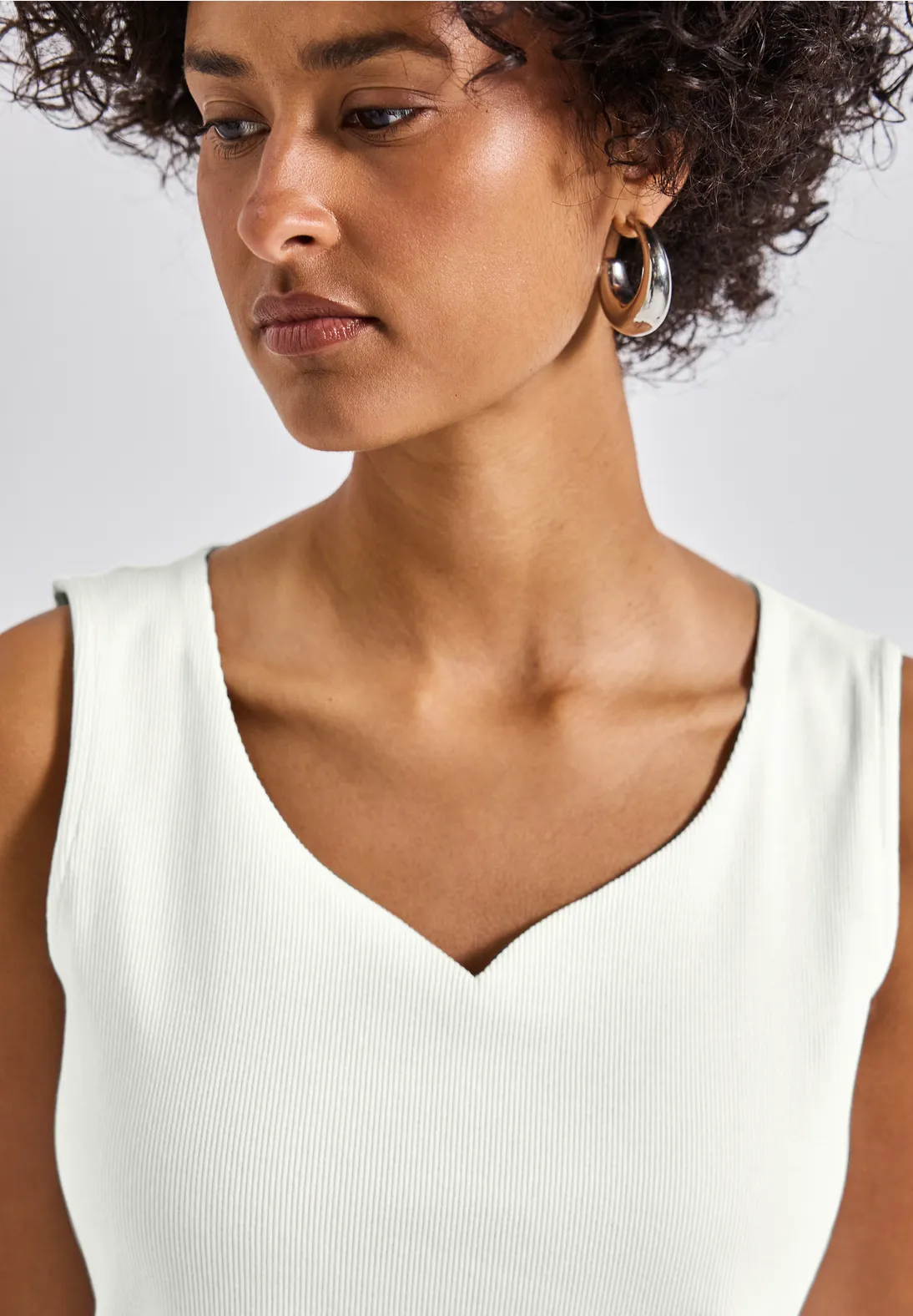 Street One Gania. Basic Street One top with wide straps, a heart neckline and a cotton lining at the front.