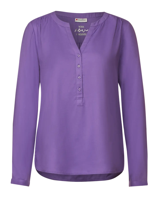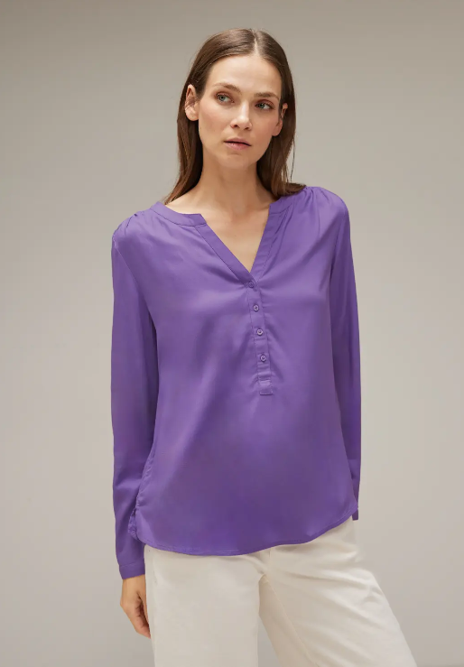 Street One Bamika. Street One blouse with long sleeves, a round neckline with V-slit and a short button closure. This Street One blouse has a loose fit with and is made from soft viscose.
