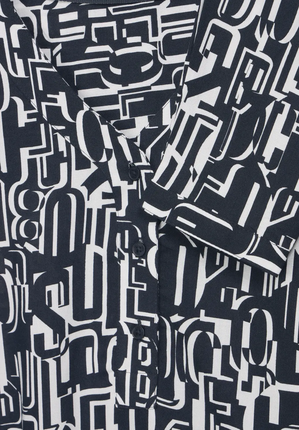 Cecil blouse with long sleeves, a V-Neckline and a letter print. This Cecil blouse has an elastic hem.