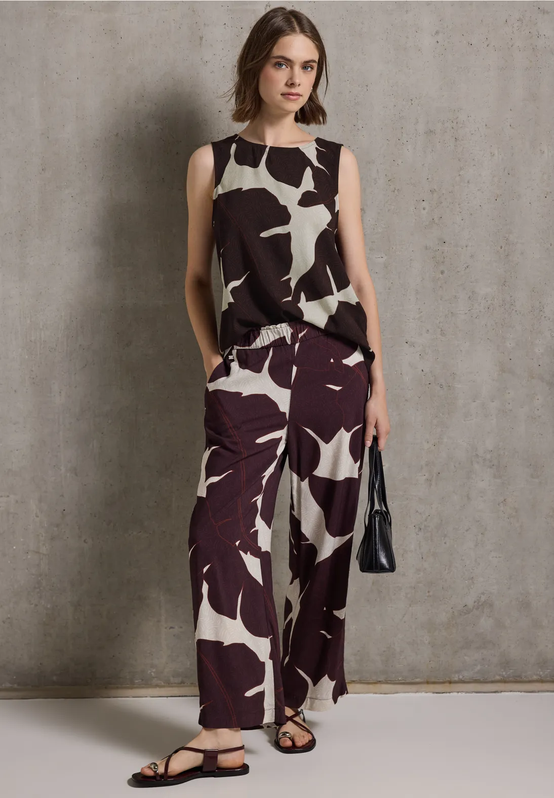 Street One Studio blouse with a round neckline, a graphic print and ribbon details at the back. This Street One Studio top has a rounded hem and is made of soft viscose.