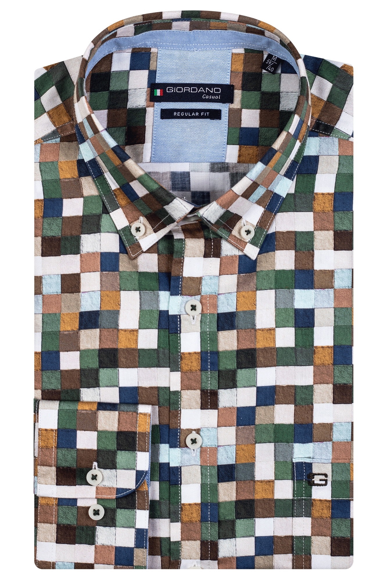 Giordano shirt with long sleeves, a button-down collar and a regular fit. This Giordano shirt has a chest pocket and an allover print.