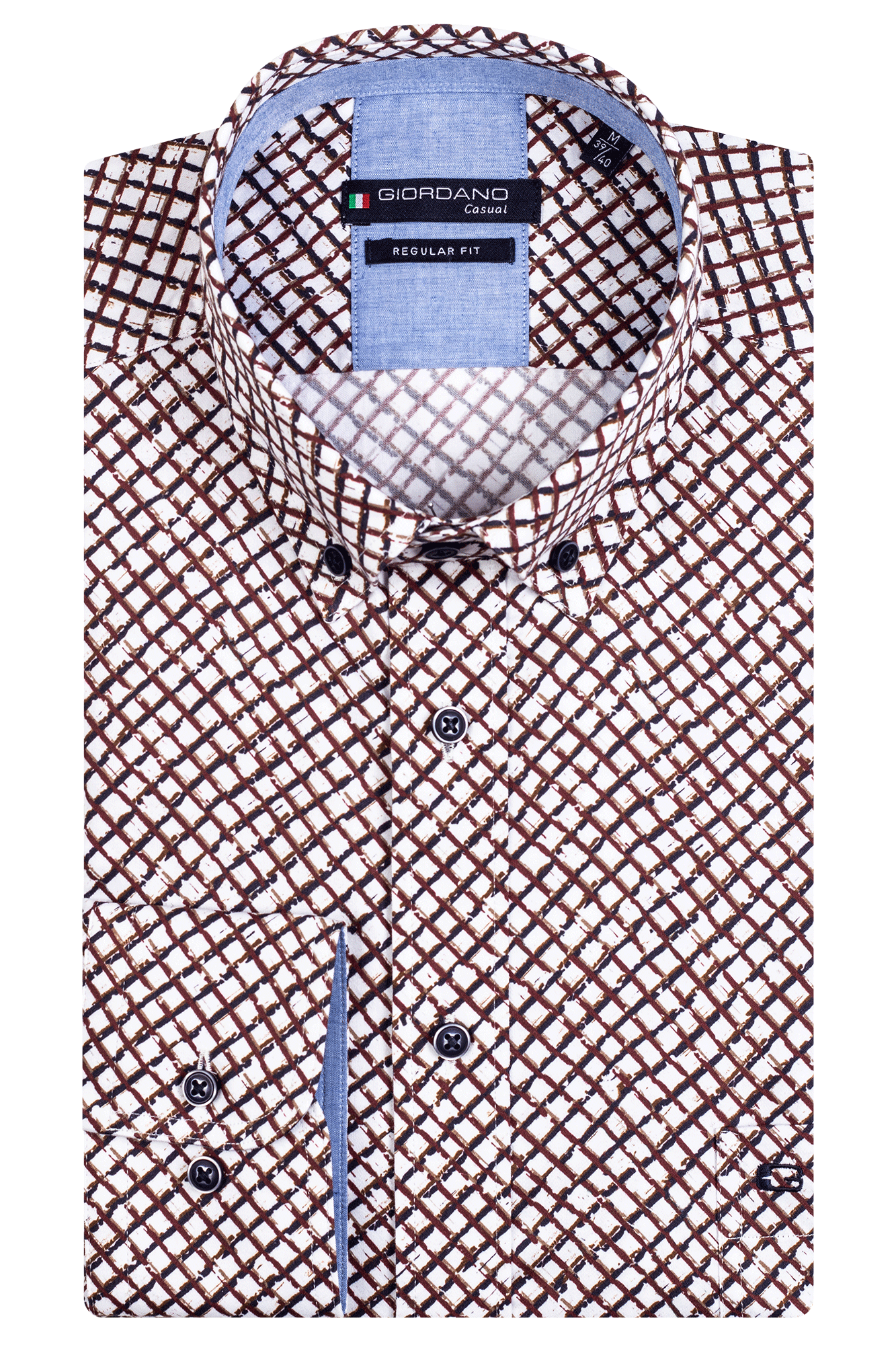 Giordano shirt with long sleeves, a button-down collar and a regular fit. This Giordano shirt has a chest pocket and an allover print.