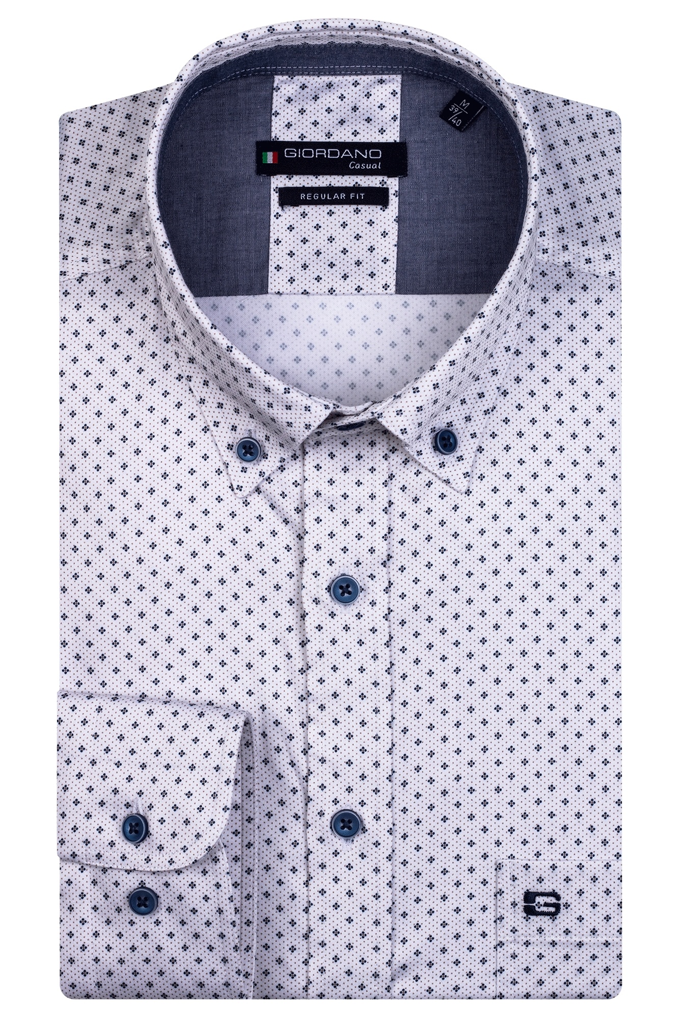 Giordano shirt with long sleeves, a button-down collar and a regular fit. This Giordano shirt has a chest pocket and an allover print.