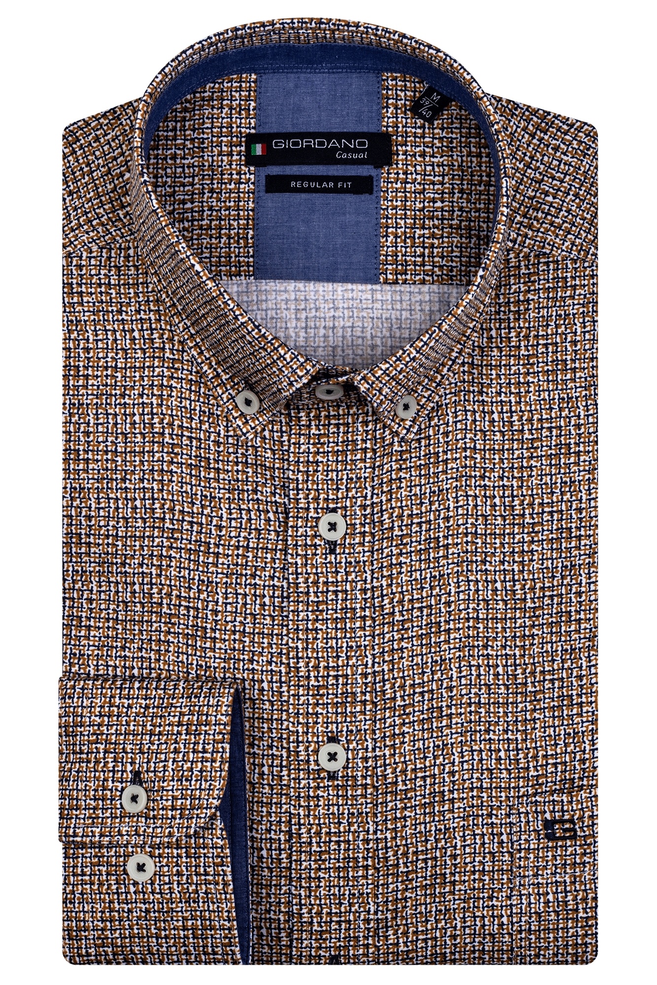 Giordano shirt with long sleeves, a button-down collar and a regular fit. This Giordano shirt has a chest pocket and an allover print.