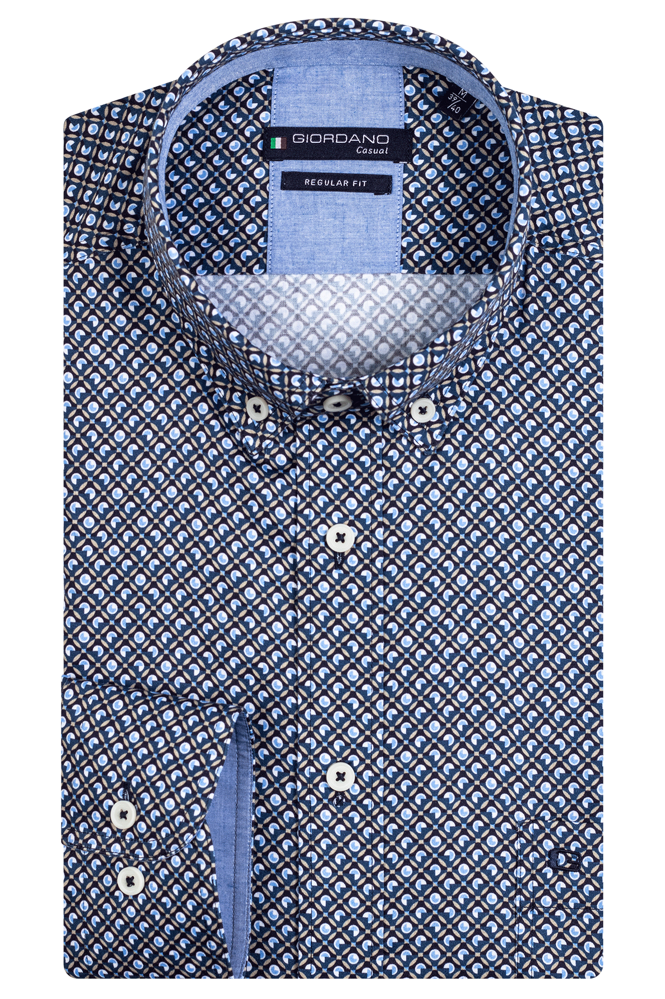 Giordano shirt with long sleeves, a button-down collar and a regular fit. This Giordano shirt has a chest pocket and an allover print.