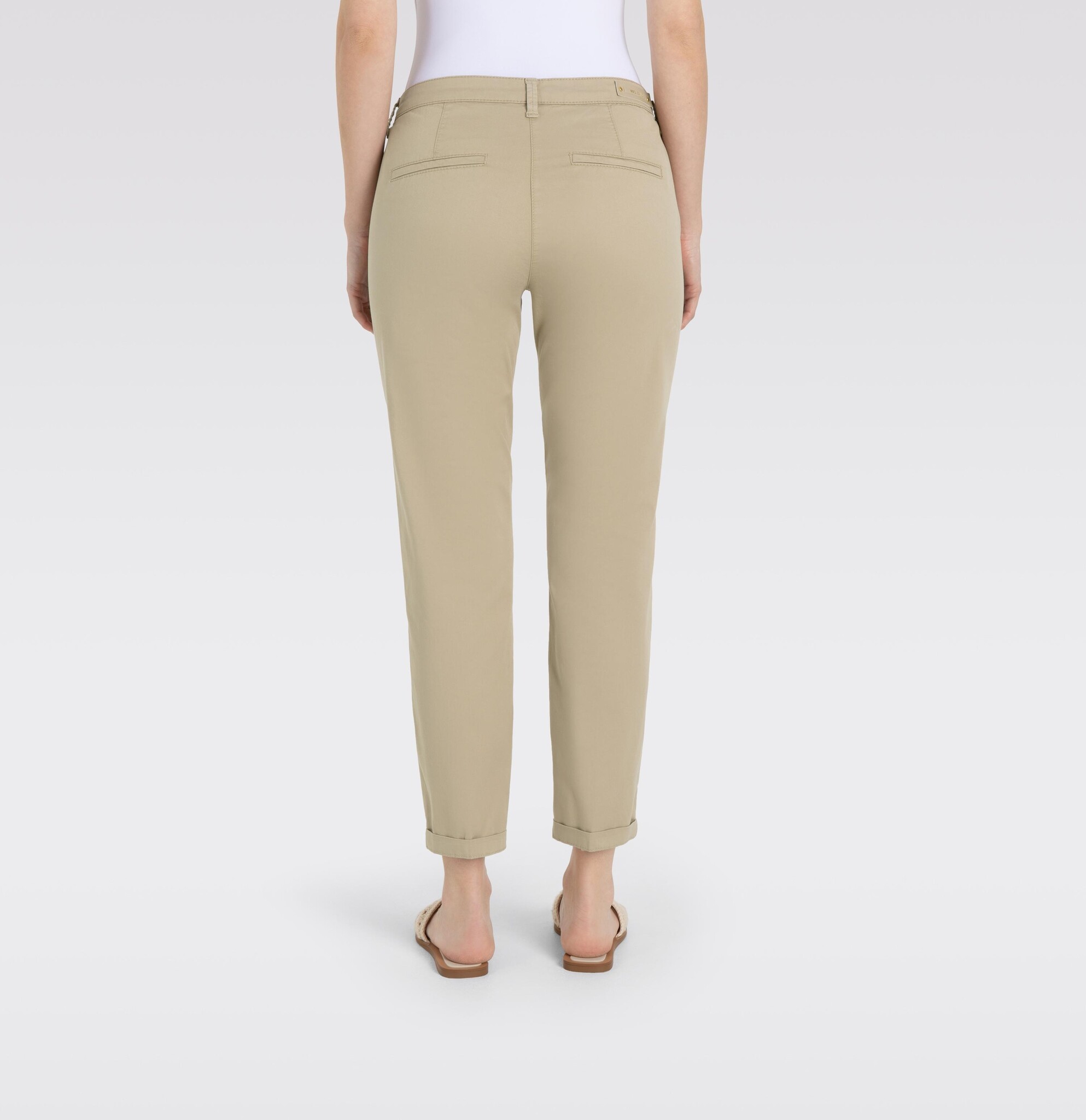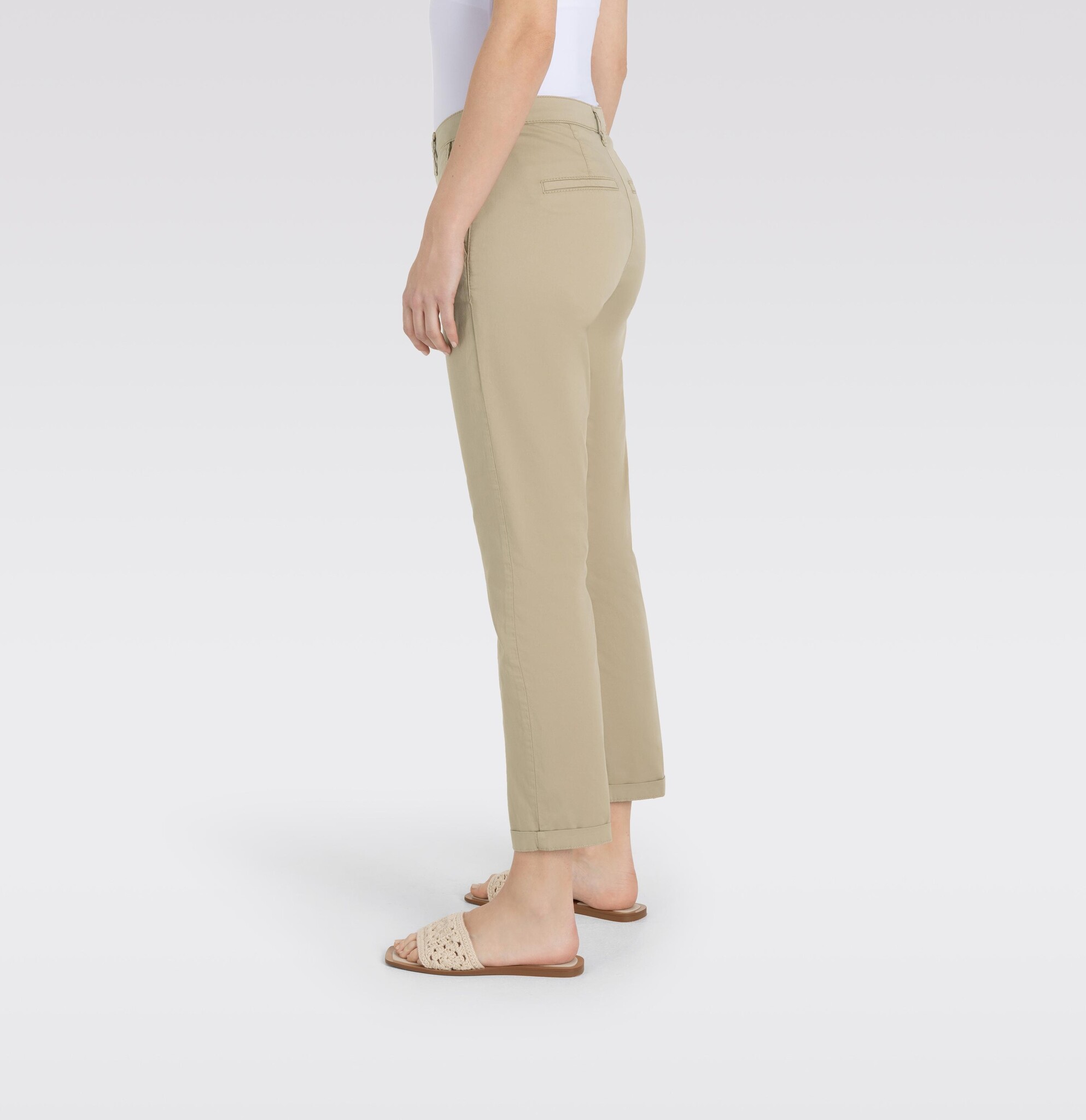 Mac Jeans women's chinos with a straight fit, normal waist and narrow tapered legs with turn-ups. These Mac pants have side pockets and welt pockets at the back. Made from a high-quality cotton quality with stretch and a soft touch.