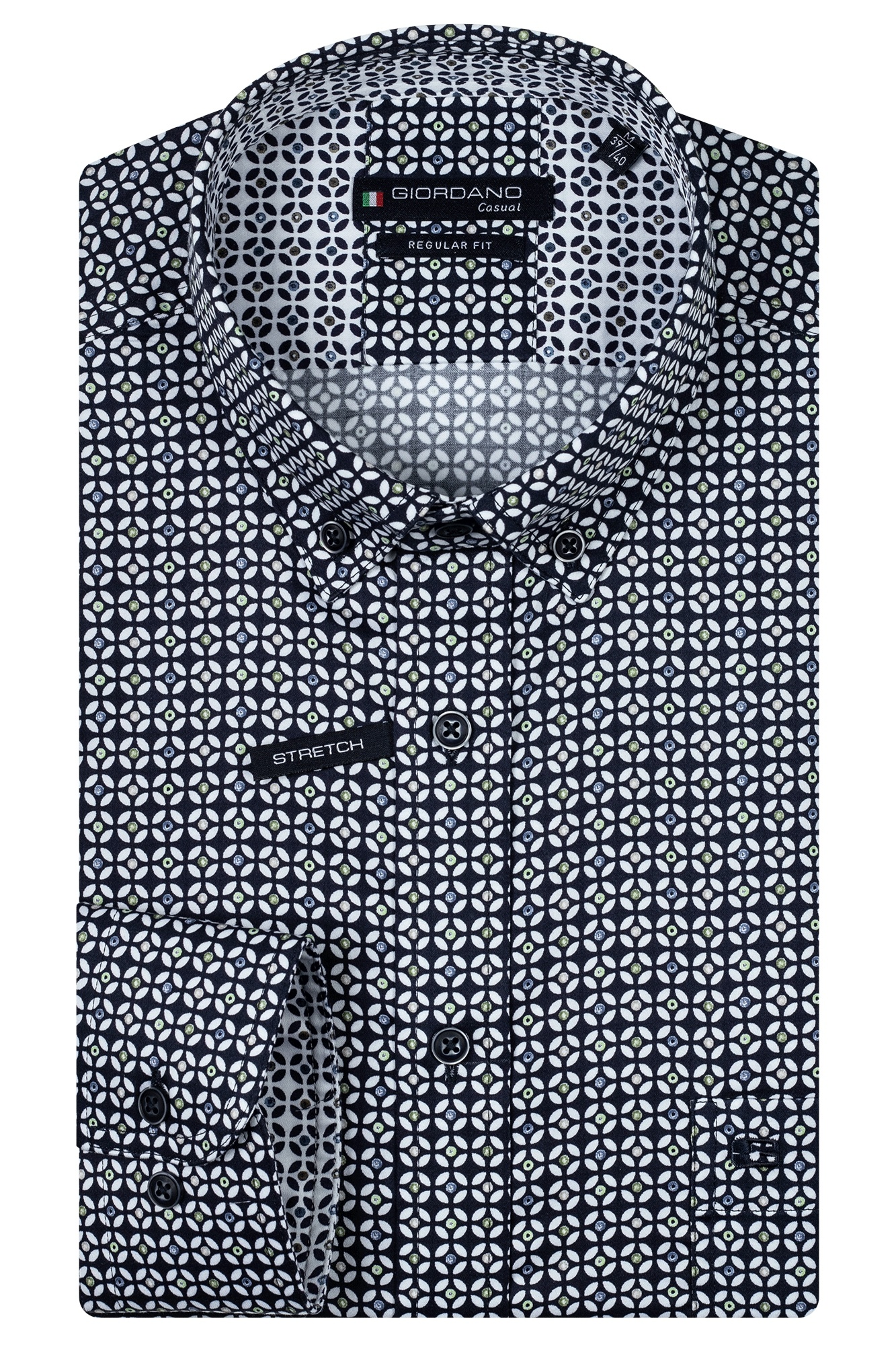 Giordano shirt with long sleeves, a button-down collar and a regular fit. This Giordano shirt has a chest pocket and an allover print.