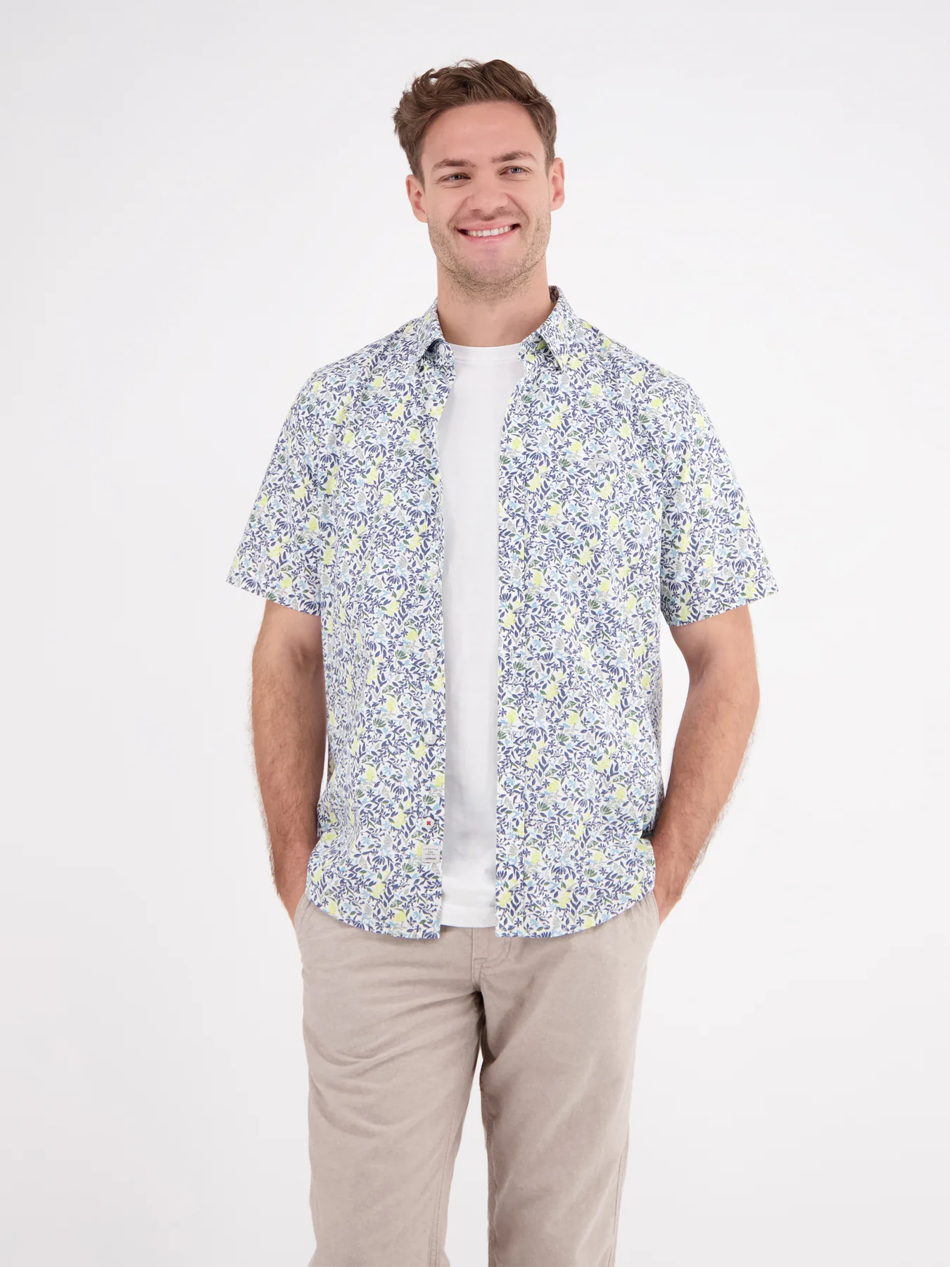Lerros shirt with short sleeves and a hidden button-down collar.