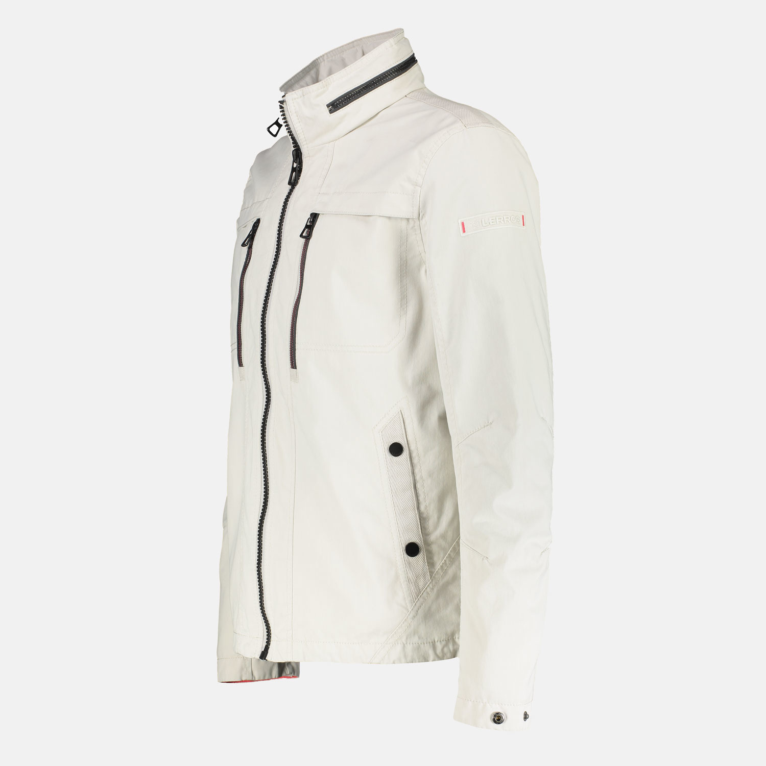 Lerros jacket with a high standing collar with a hidden hood. This Lerros jacket has several pockets and adjustable cuffs.