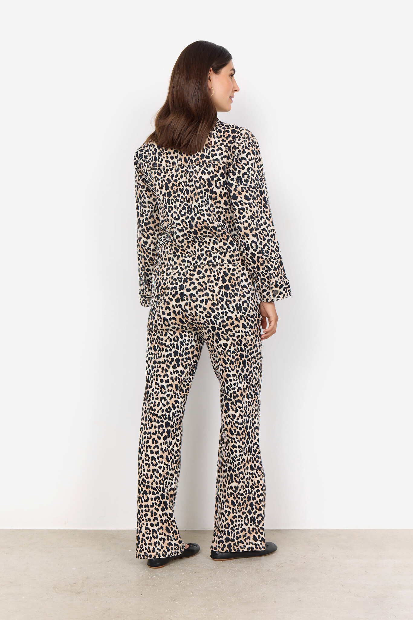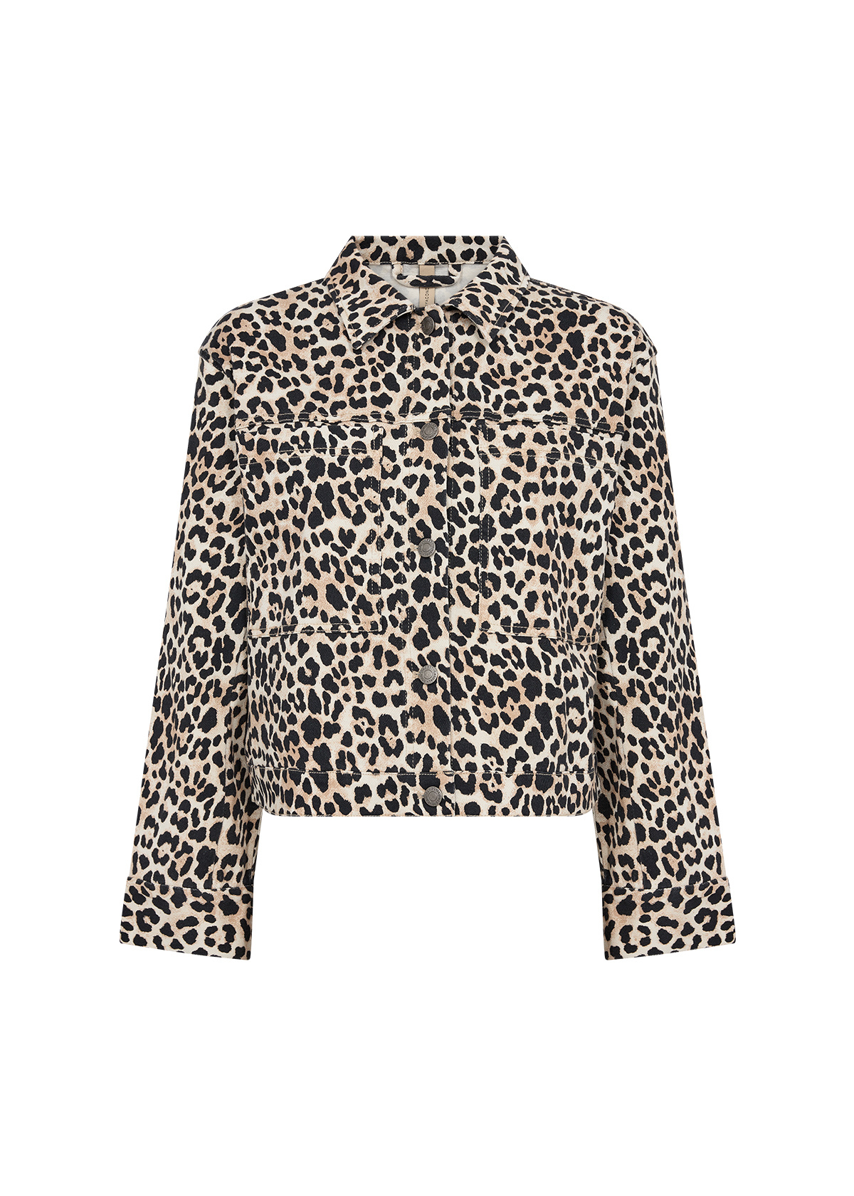 Soyaconcept SC-Owena 2. Soyaconcept jacket with long sleeves and chest pockets. This Soyaconcept jacket has a leopard print and is closed with metal buttons. Made of organic cotton with comfortable stretch.