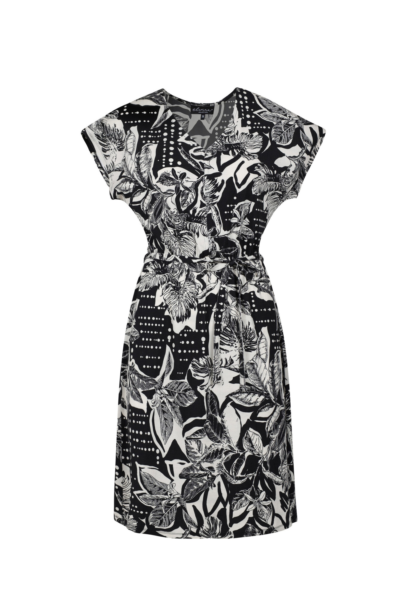Elvira Collections Suzy. Elvira Collections dress with short sleeves, a V-neckline and an allover print. This Elvira dress has a removable belt, an elastic waist and is made of a comfortable jersey.