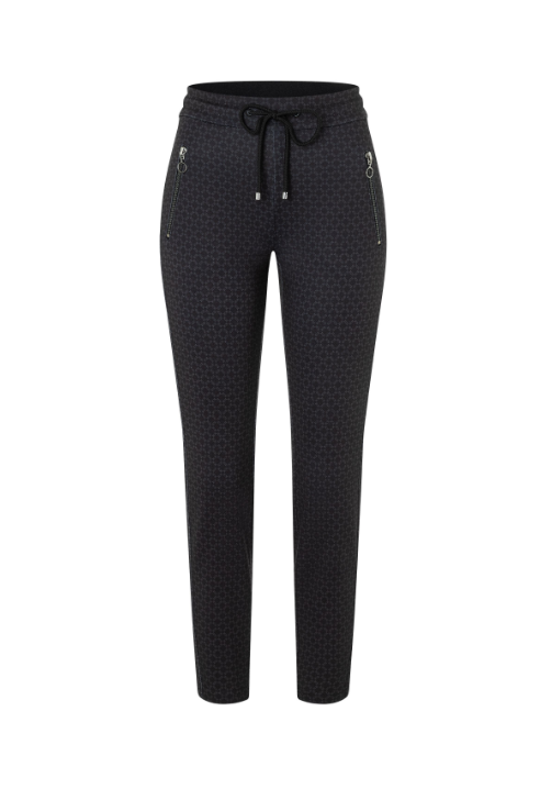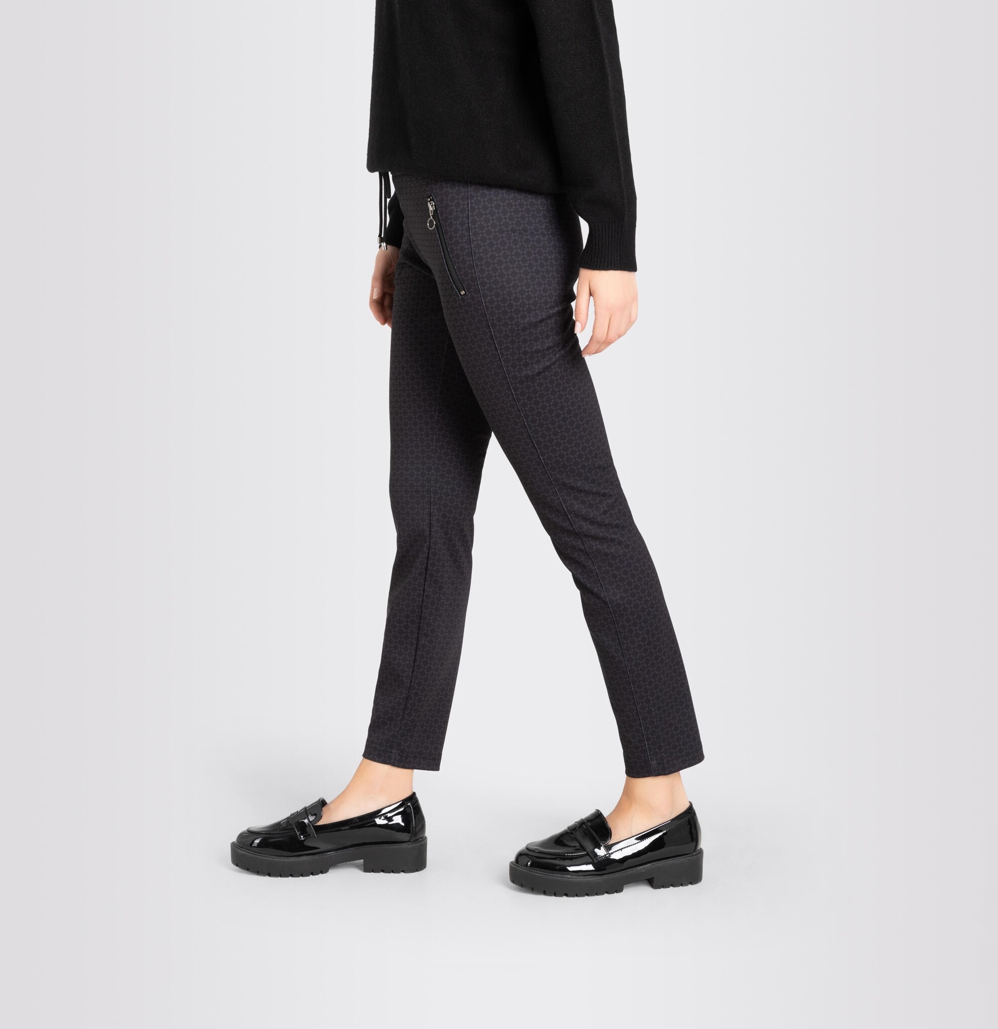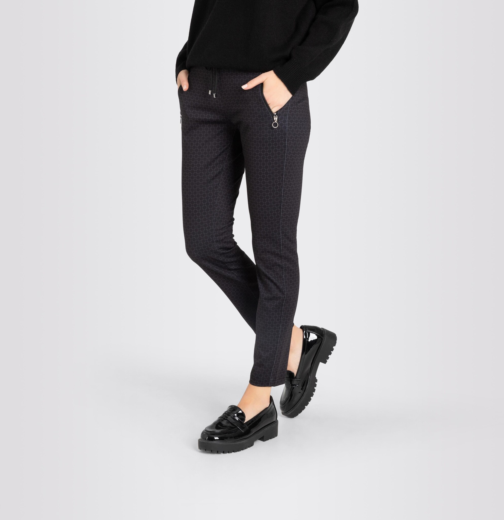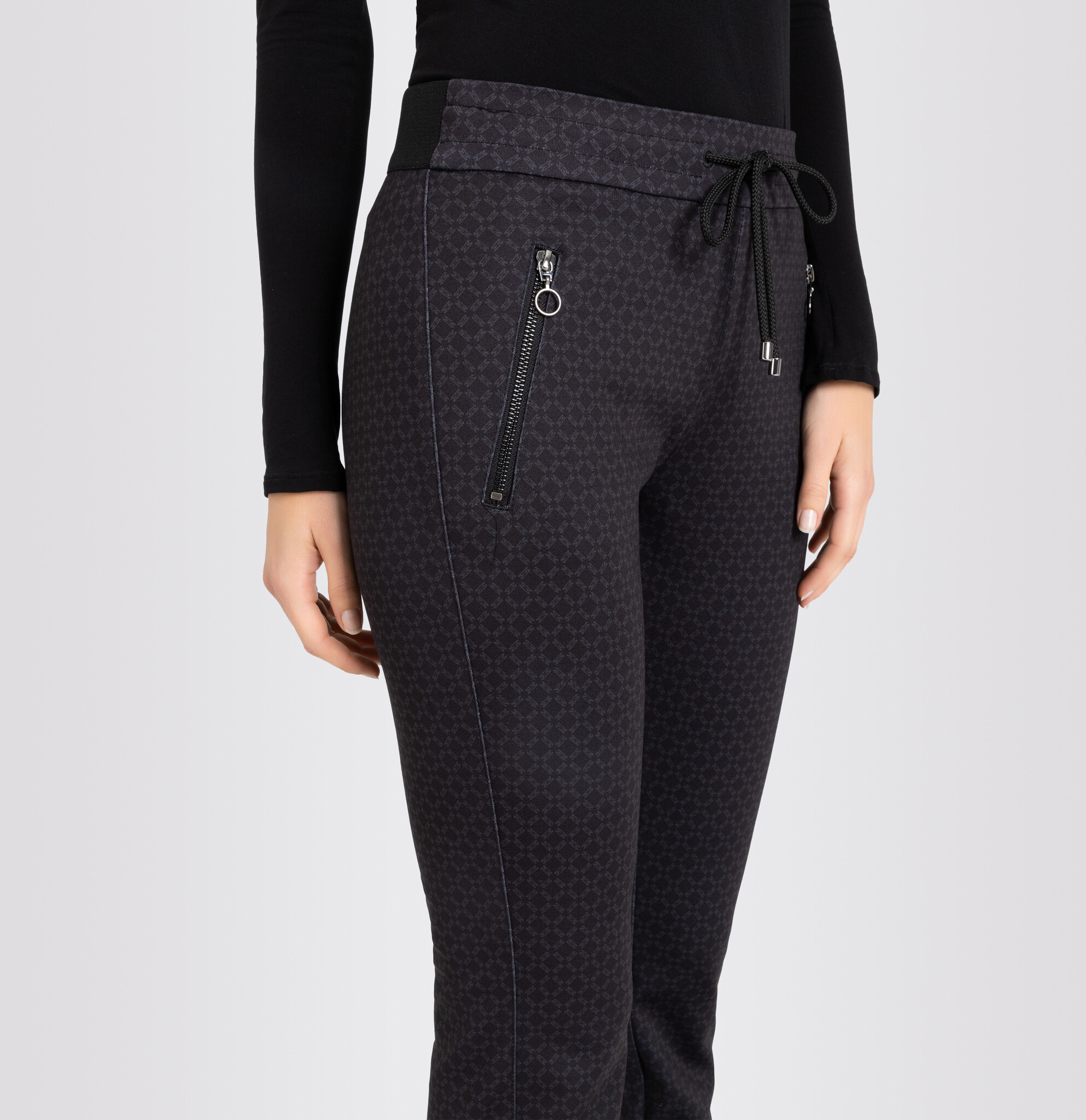 Mac Jeans Easy Smart. Jersey Mac pants with a slim fit, slim leg and an elastic waistband with drawstring. These comfortable Mac pants have an allover print, soft touch and zip pockets. Made from a light jersey quality with viscose.