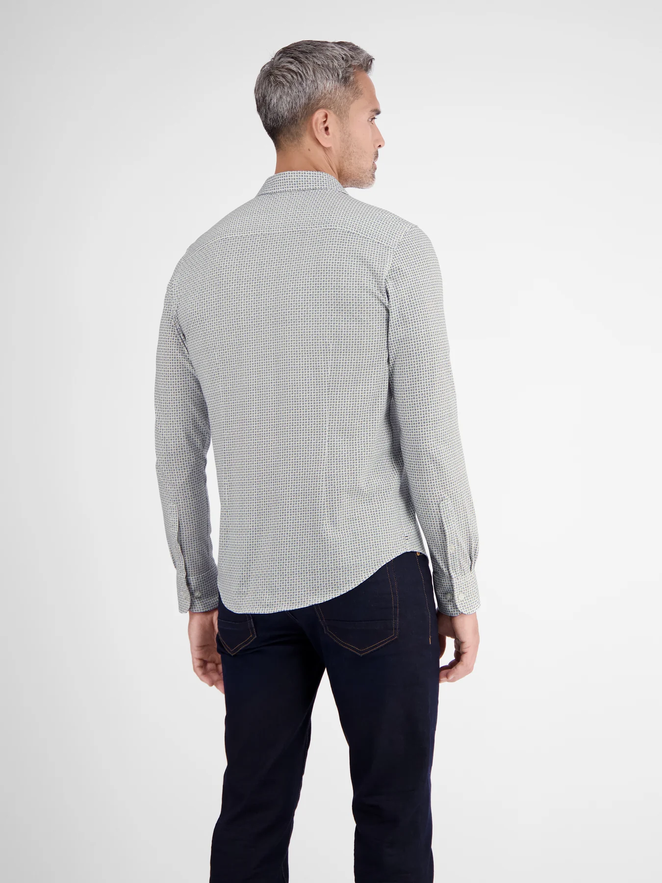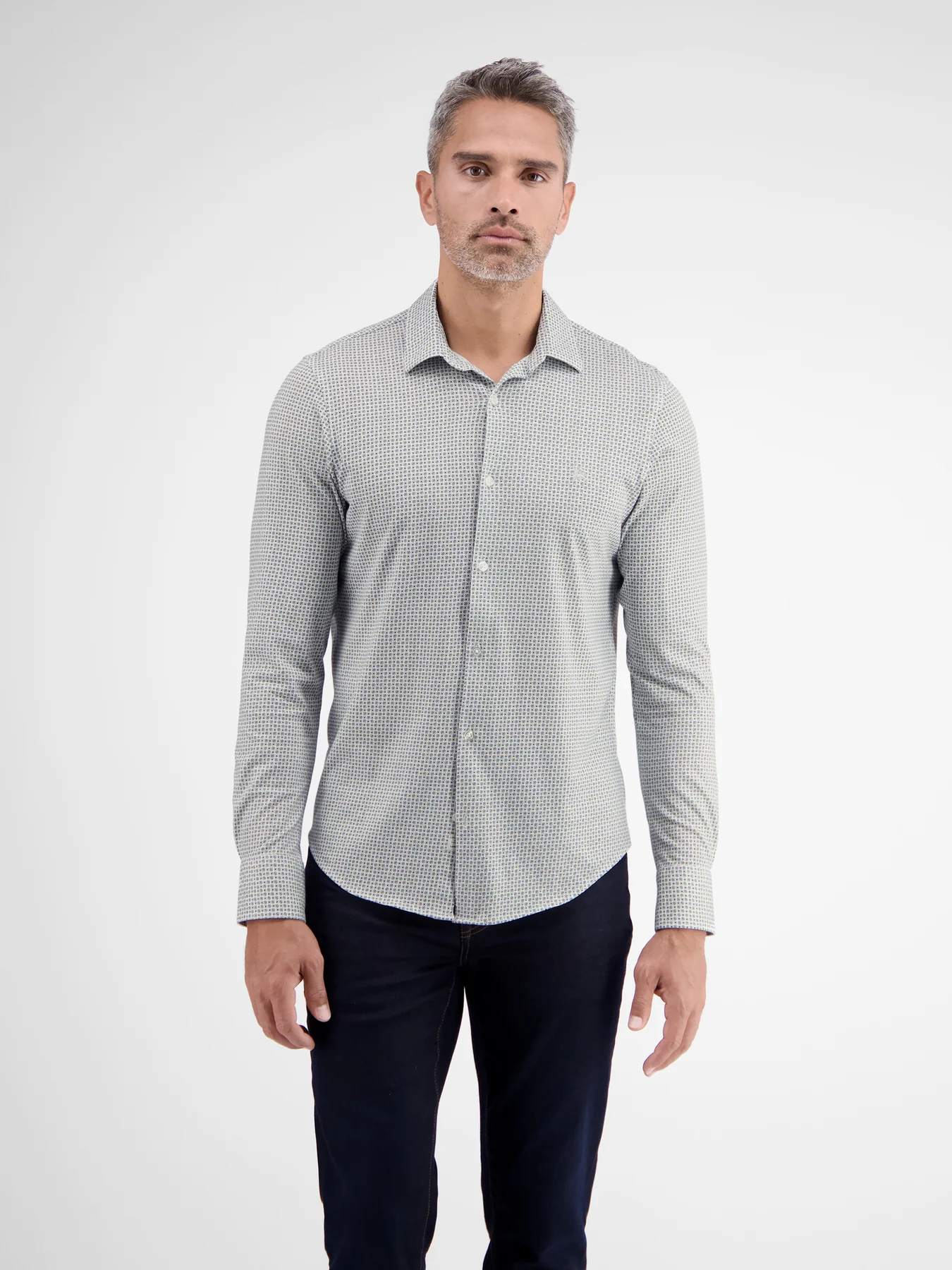 Lerros shirt with long sleeves, a shark collar and an allover print. This Lerros shirt is made from a comfortable jersey.