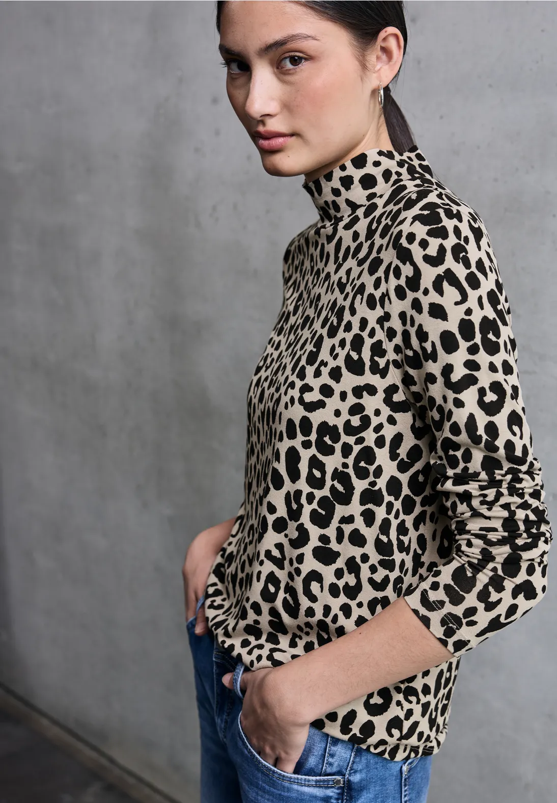 Street One Studio shirt with long sleeves, a turtleneck and an animal print. This Street One Studio shirt is made of comfortable jersey fabric.