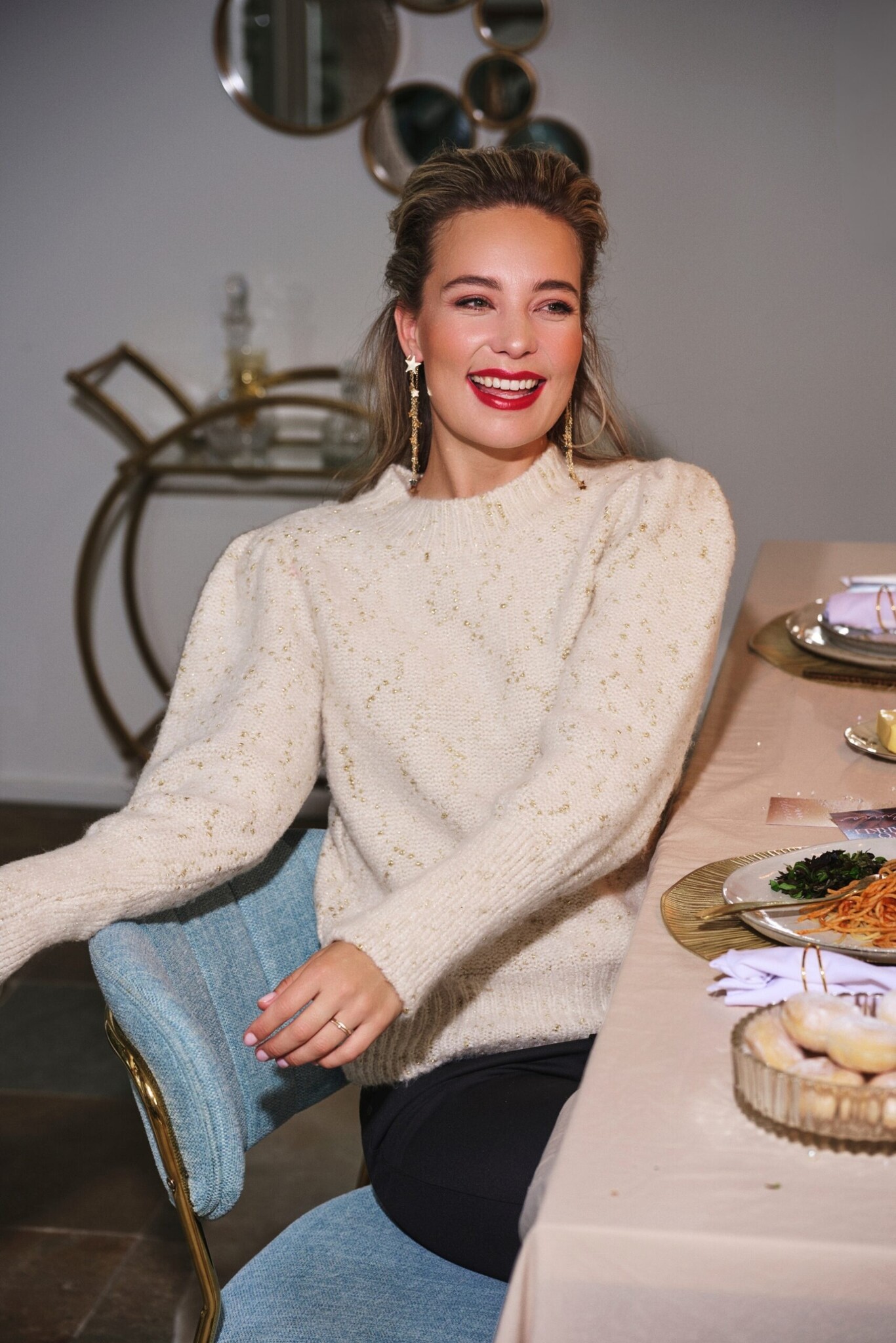 Elvira Collections Gemma. Soft knitted Elvira Collections jumper with long sleeves and a round neckline. The subtle glitters are completing this jumper.