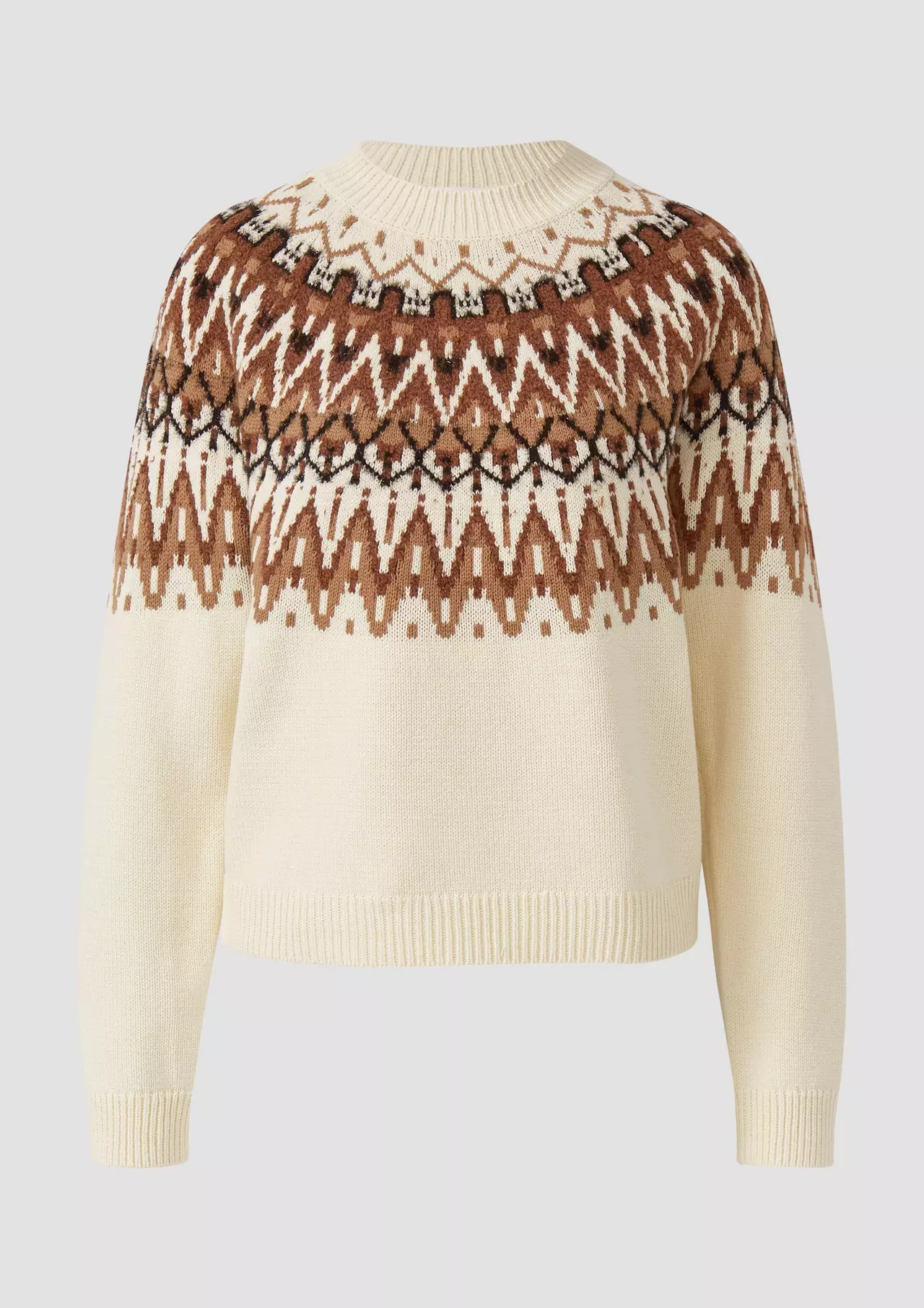 S. Oliver – Knitted Jacquard Sweater for Women – Cream