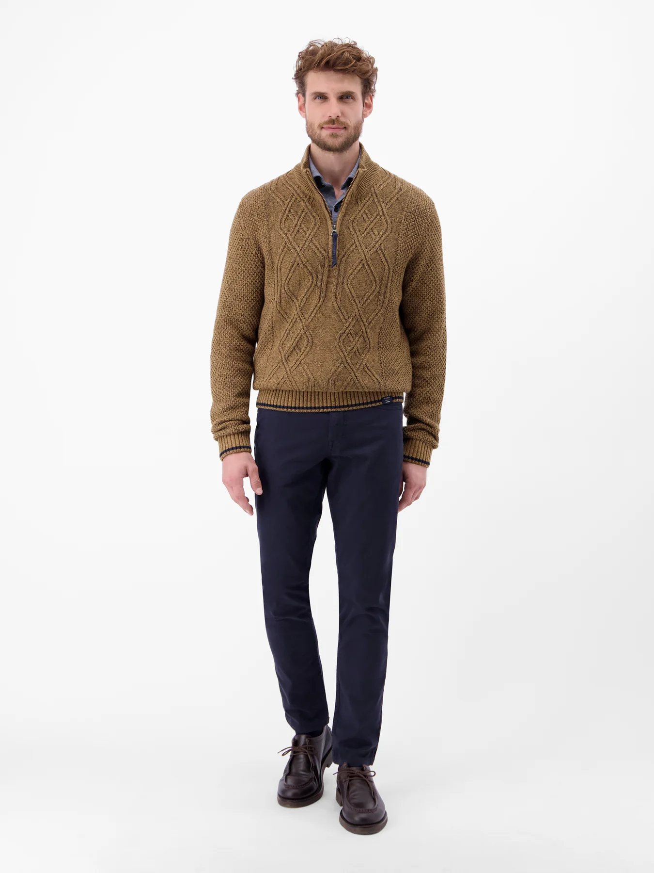 Lerros Cable-Knit Sweater with Troyer Collar - Light Coffee