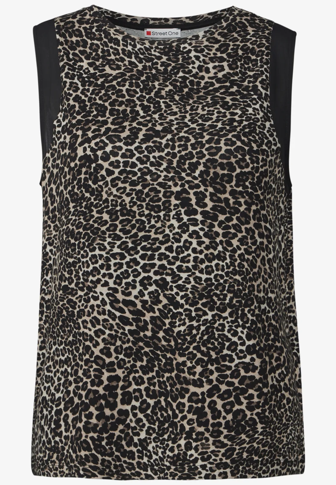 Street One jersey top with a leopard print, round neckline and chiffon details on the straps. This Street One top is made of a soft viscose mix with stretch.