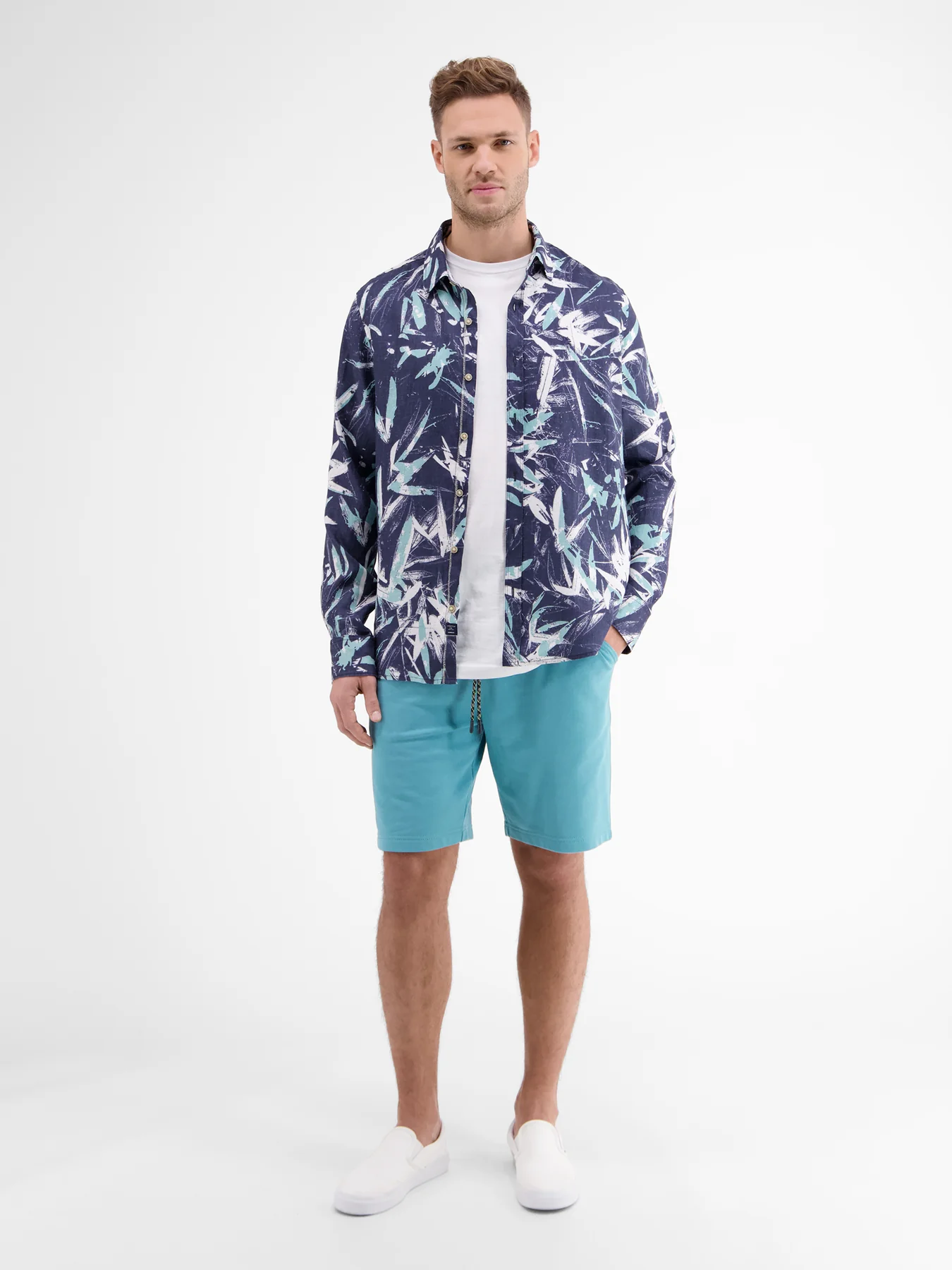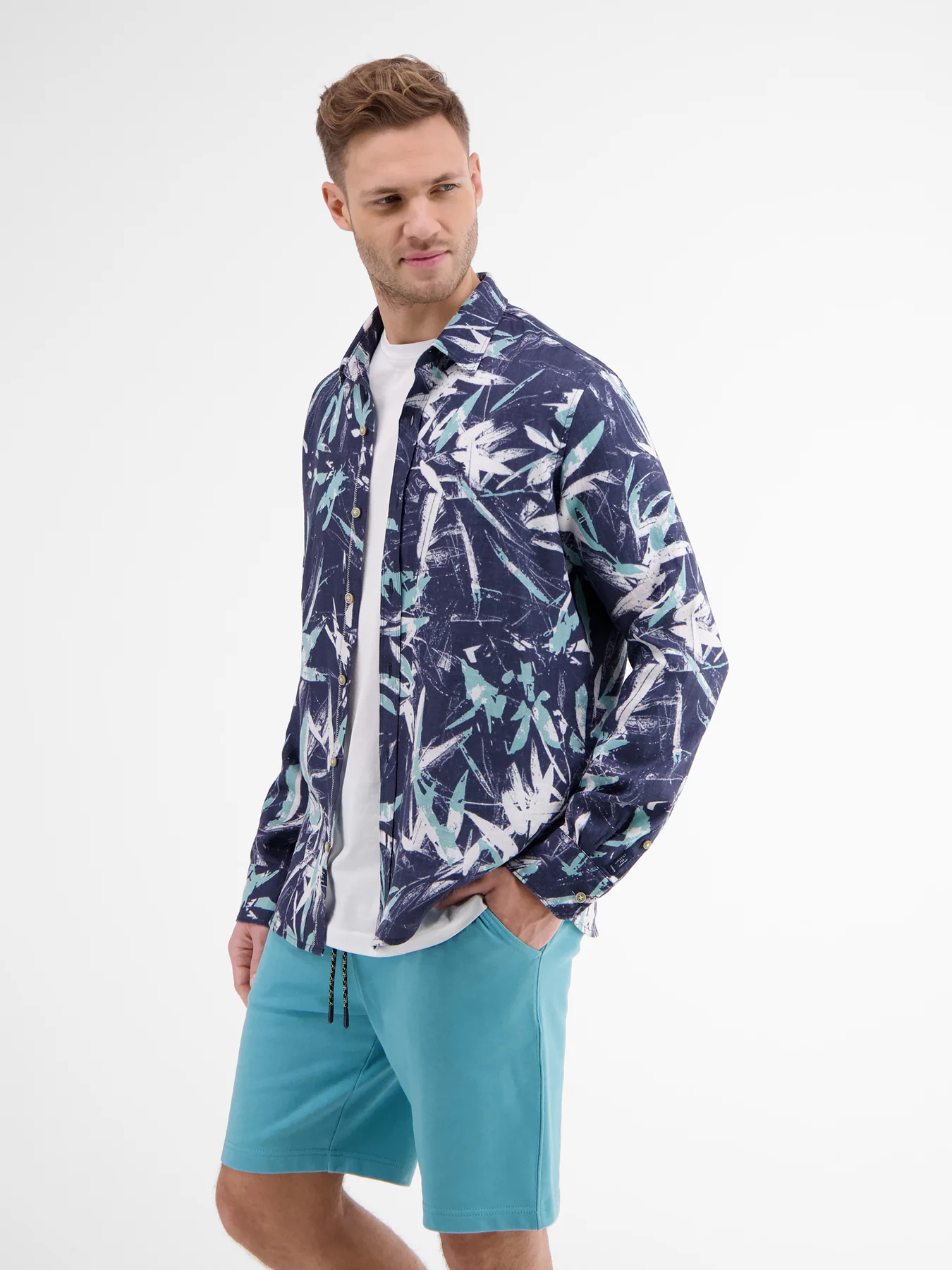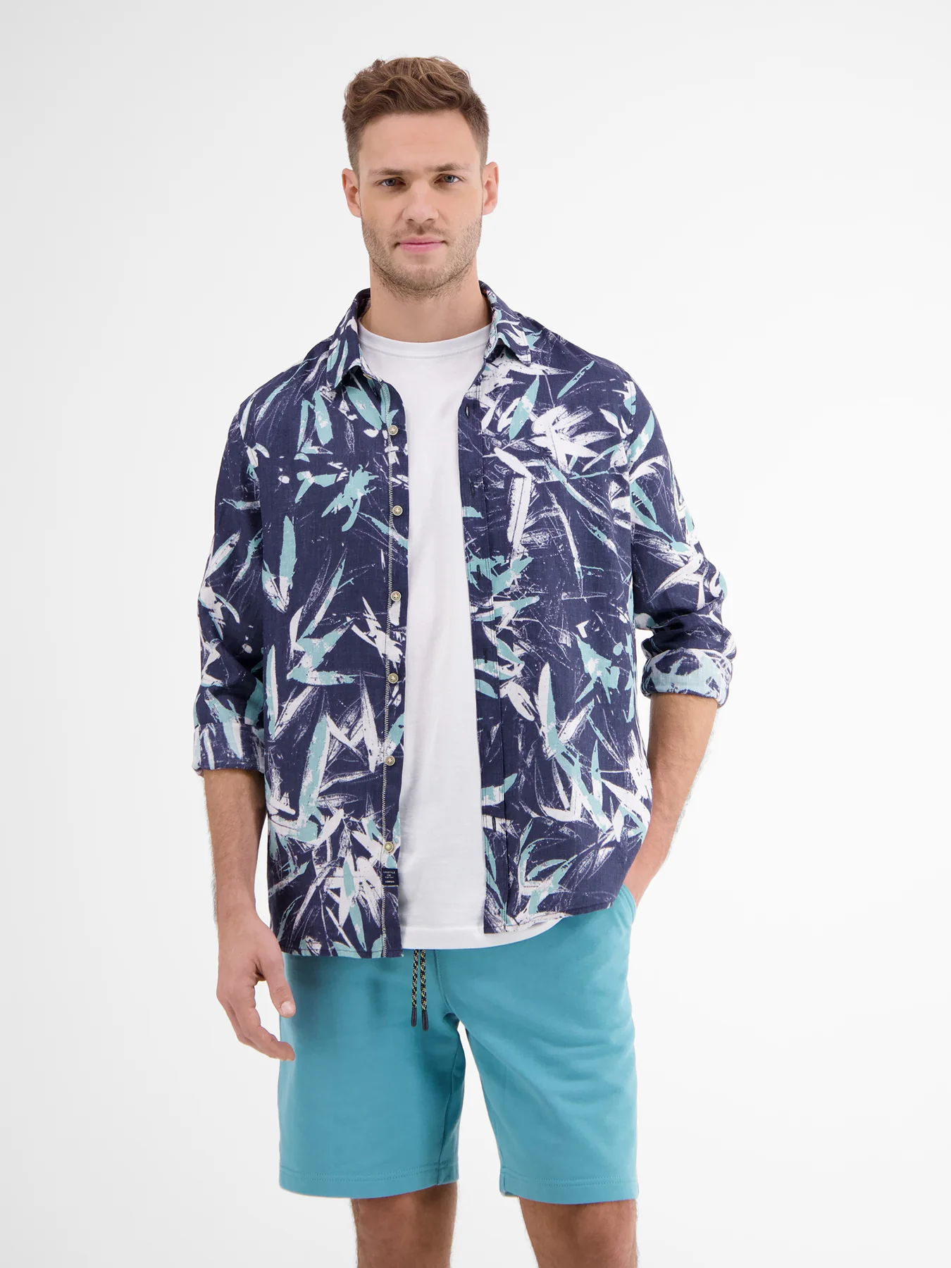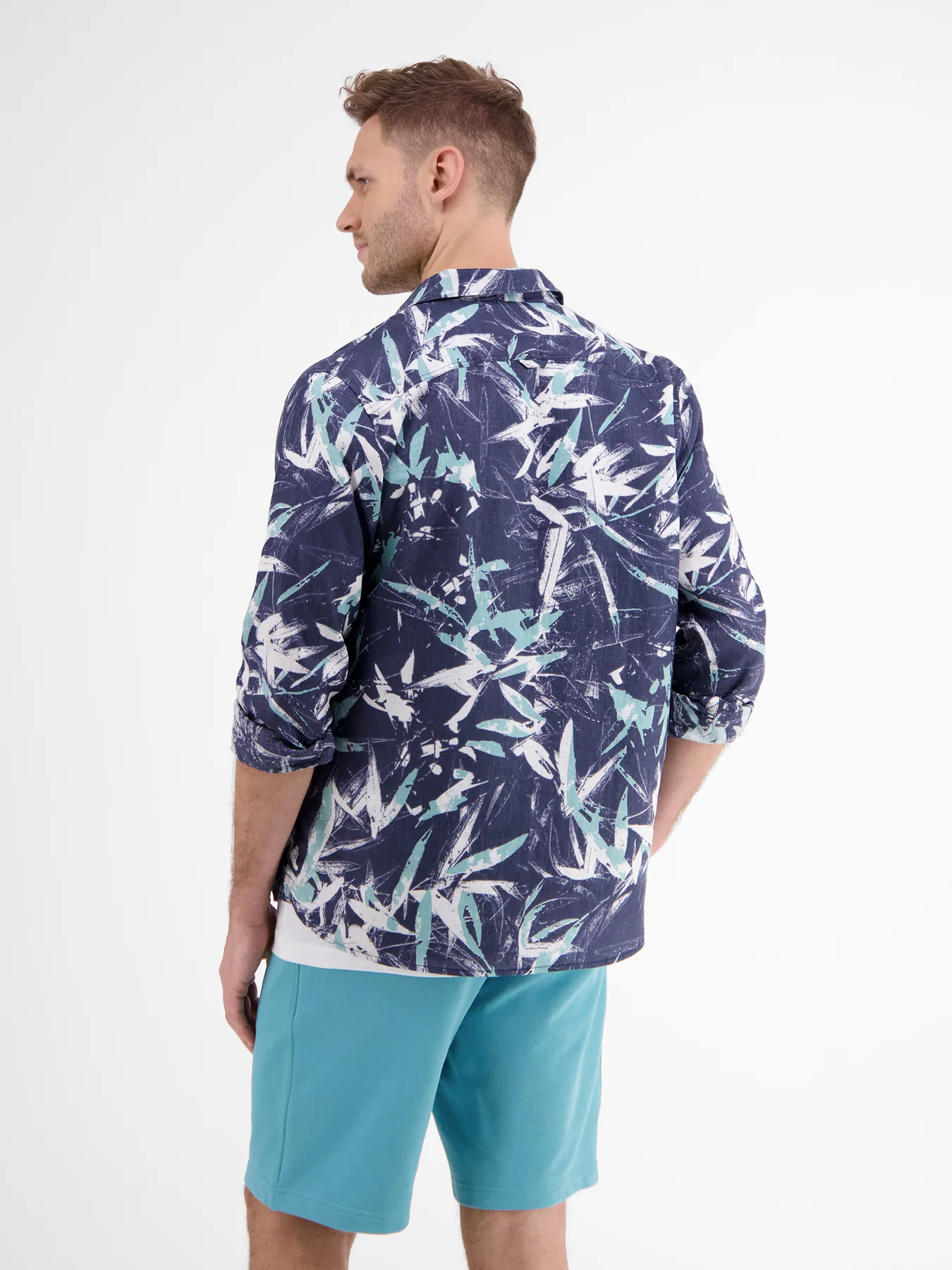 Lerros shirt with long sleeves, a collar and an allover print. This Lerros shirt is made from linen.