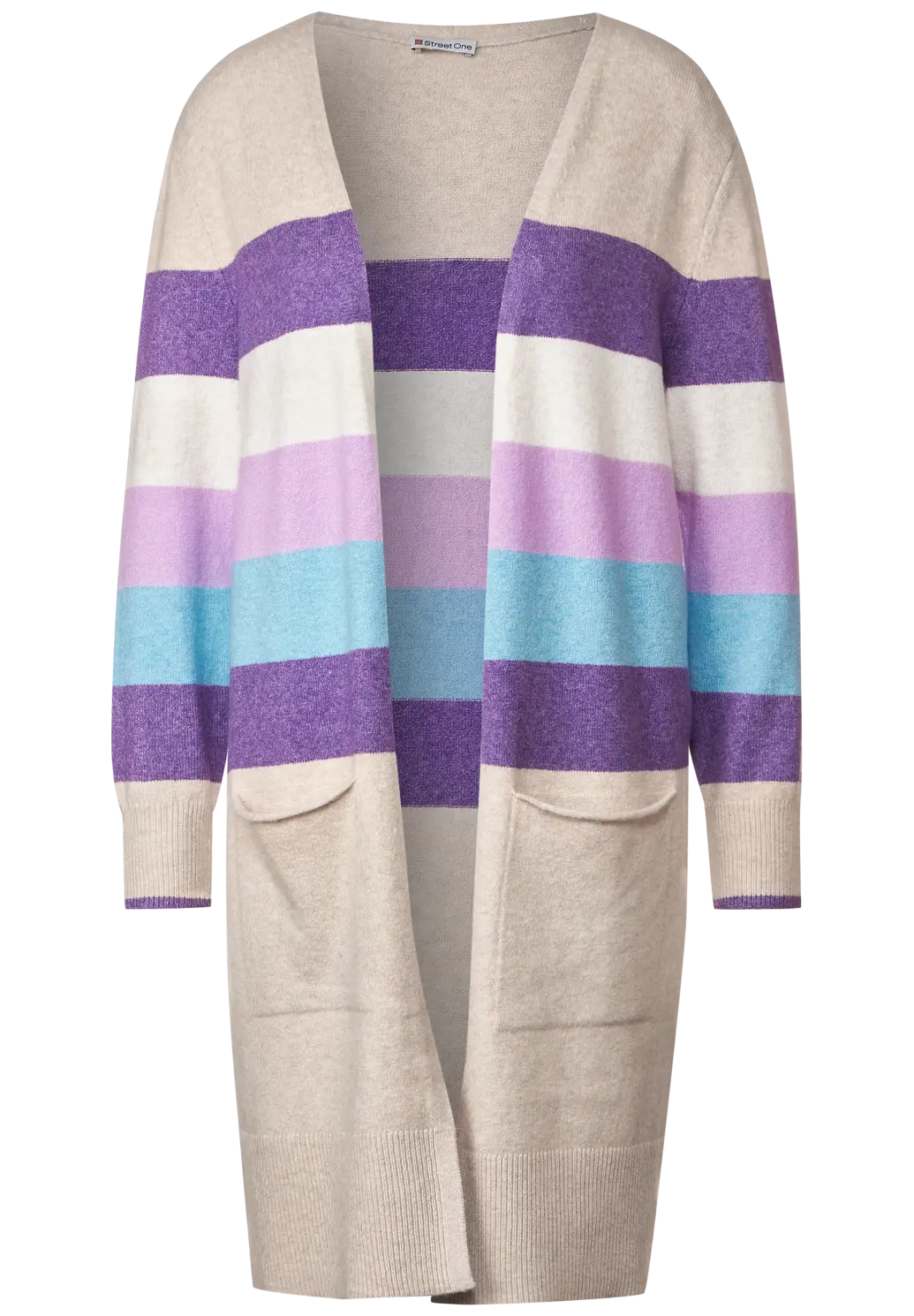 Long Street One cardigan with long sleeves, multi-colored stripes and an open model without closure. This Street One cardigan is made of a soft material mix.