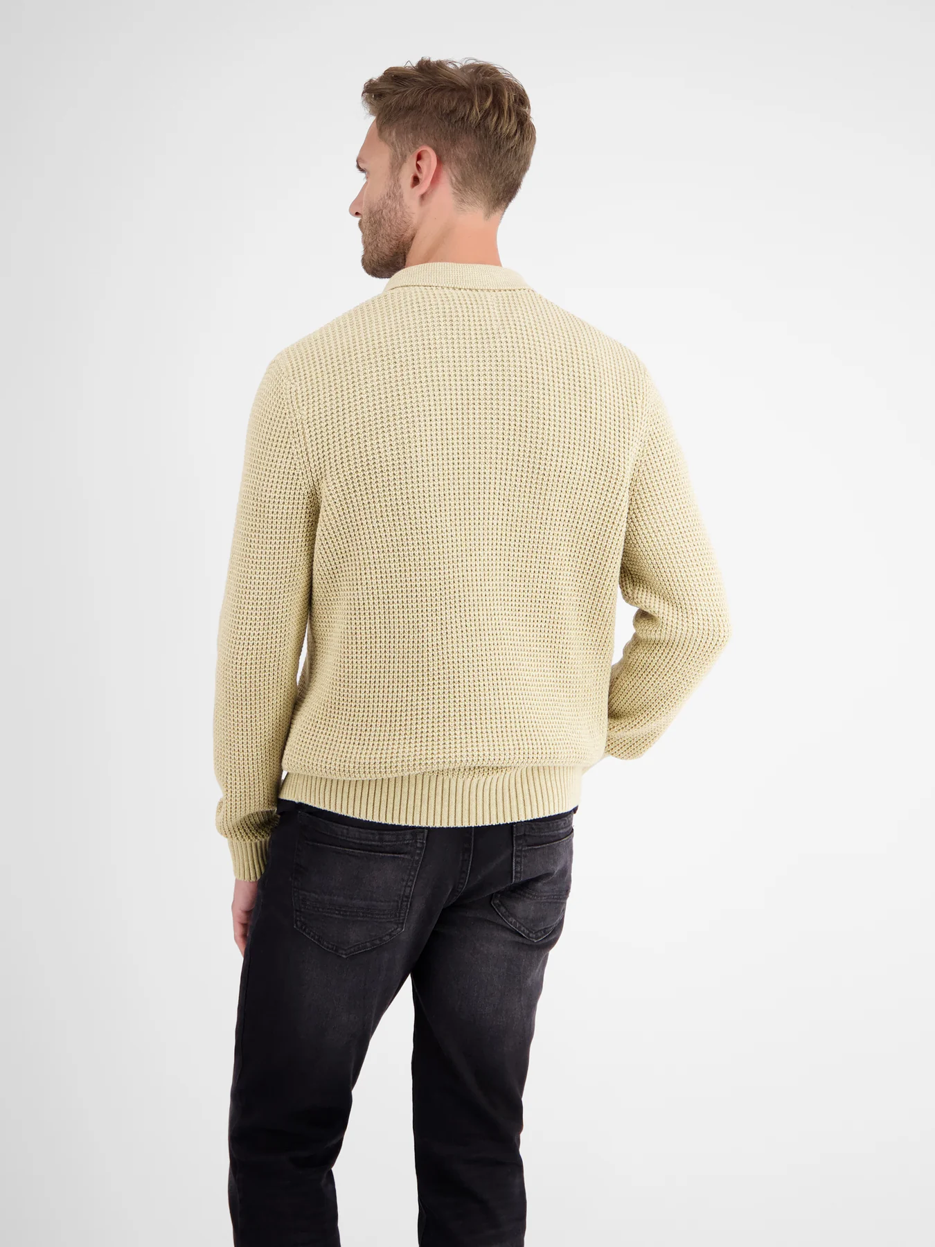 Knitted Lerros sweater with a polo collar and button closure. This Lerros sweater has ribbed hems and is made of high-quality BCI-certified cotton.