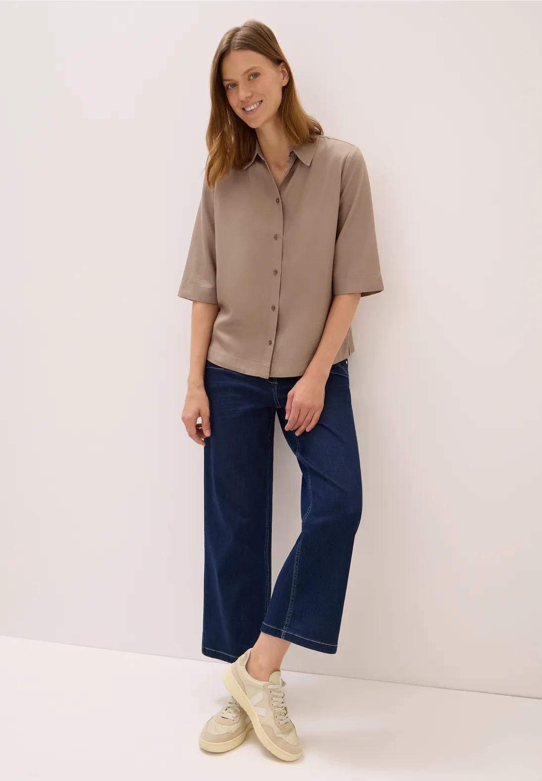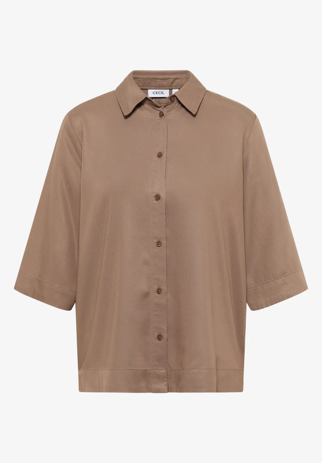 Cecil blouse with short sleeves, a shirt collar, and a long button closure. This Cecil blouse is made of soft lyocell.