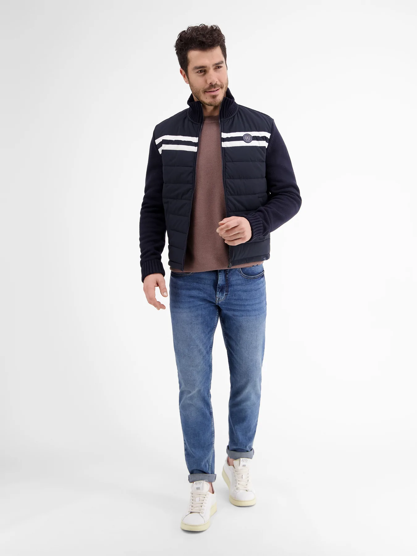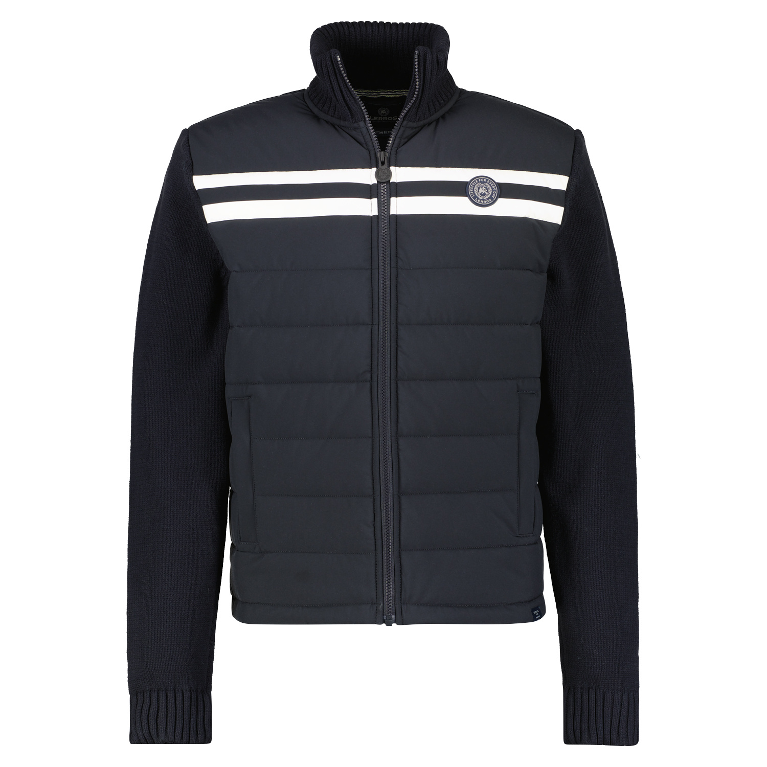 Lerros jacket with knitted sleeves and a quilted body. This Lerros cardigan has a zipper and side pockets. Made from a high quality synthetic fiber.