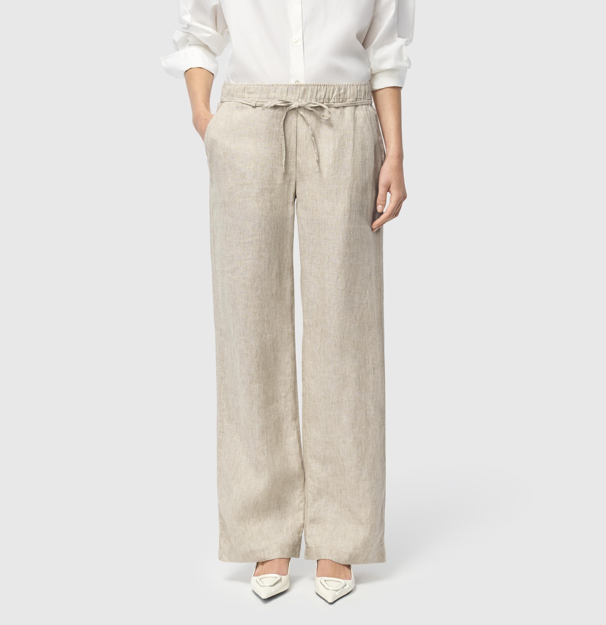 Mac Jeans Chiara. Comfortable Mac pants with a feminine fit, elastic waistband and a wide, straight leg. These Mac pants have a normal waist and are made of pure linen.