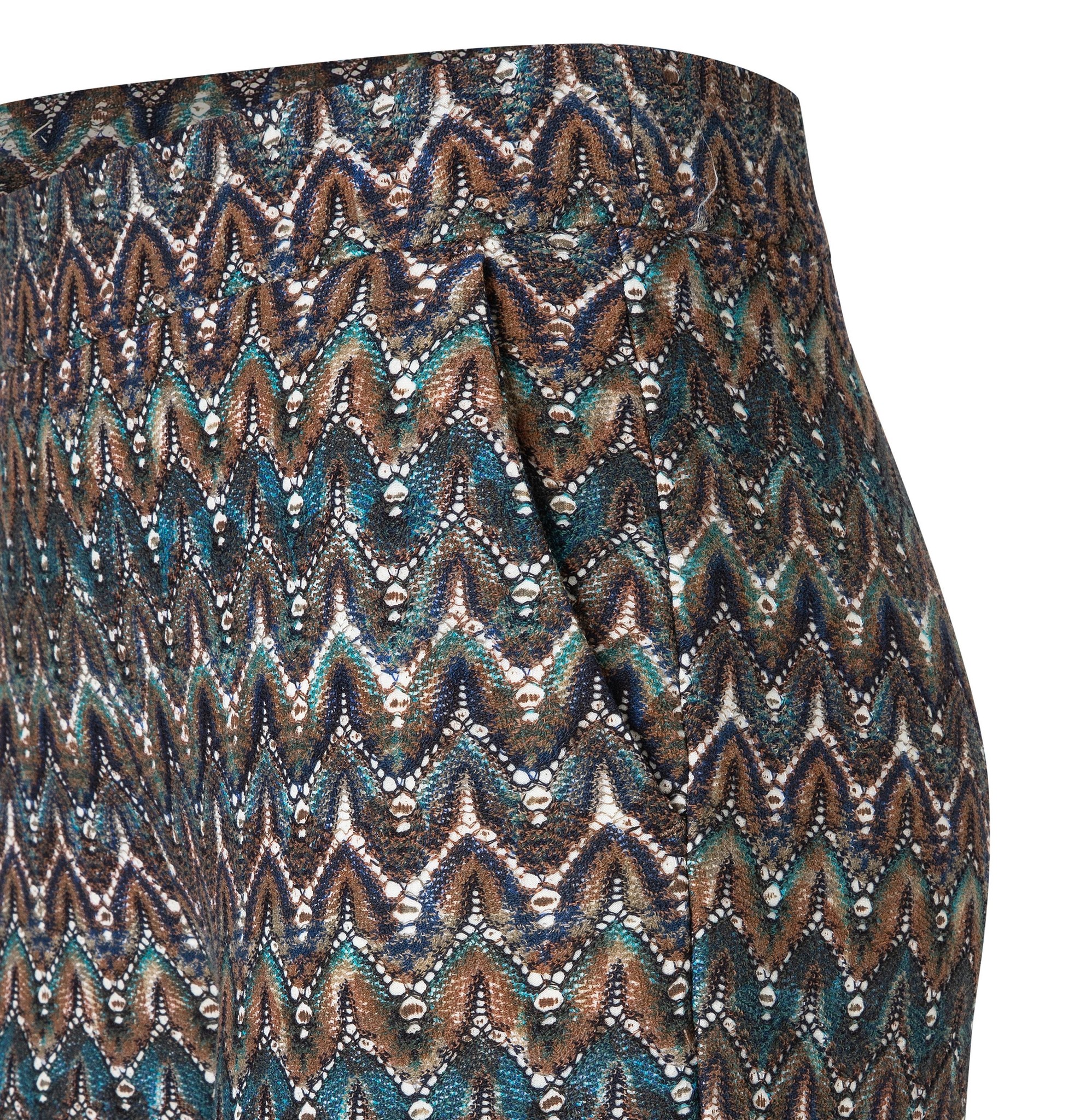 Mac Jeans Chiara. Comfortable Mac pants with an elastic waistband and an allover print. These Mac pants have a feminine fit and straight, shortened legs. The material is thicker, fitted lace with a jacquard pattern.