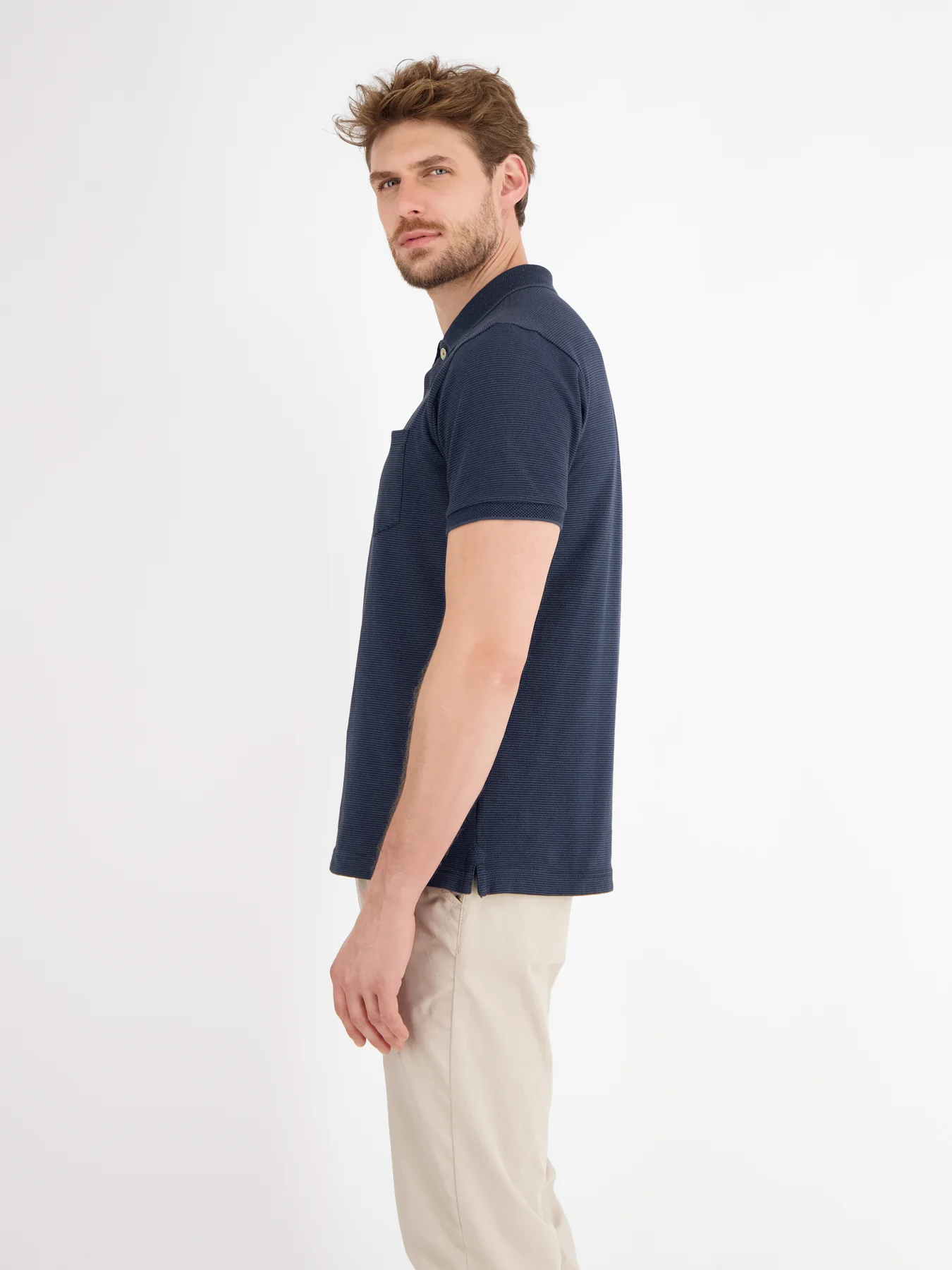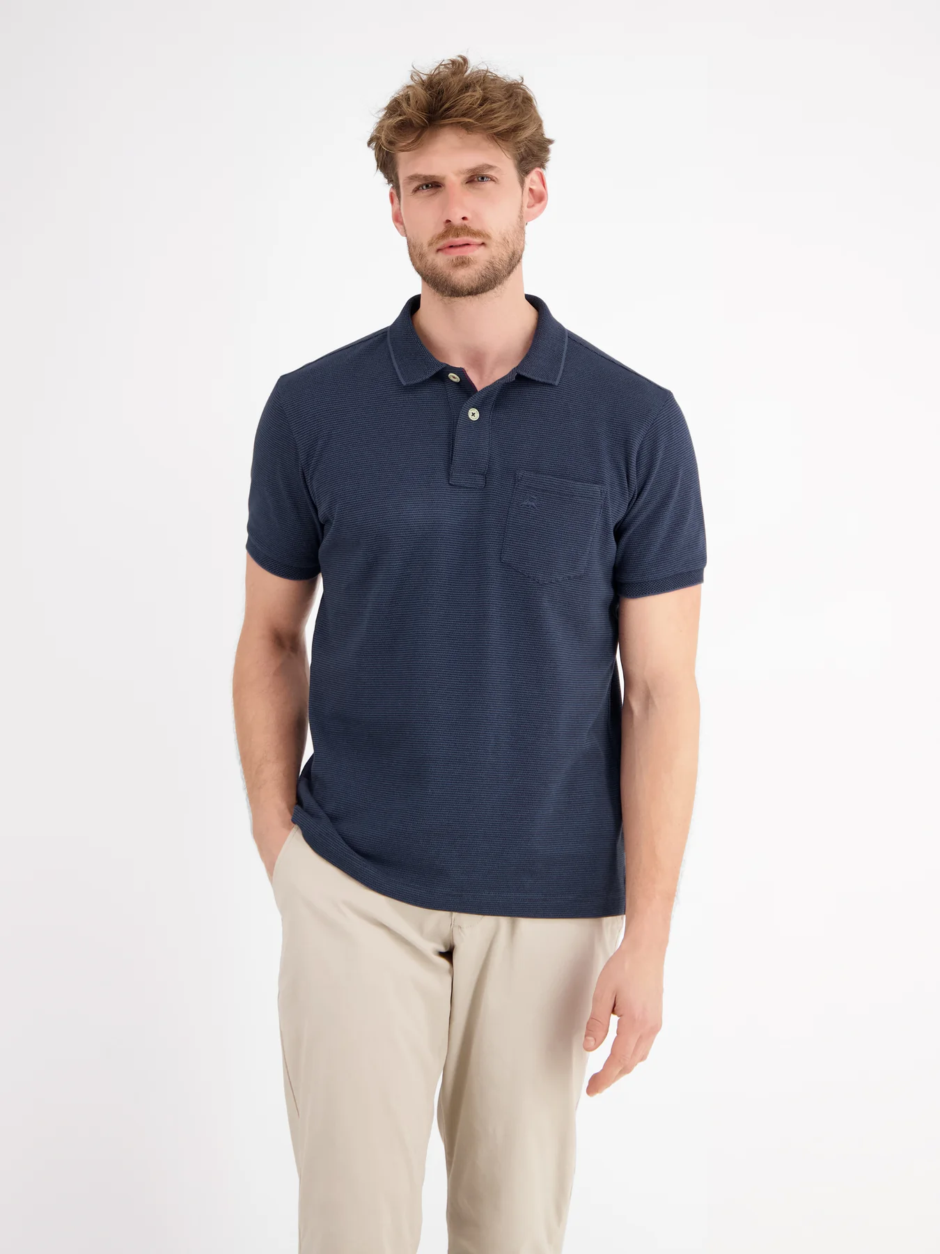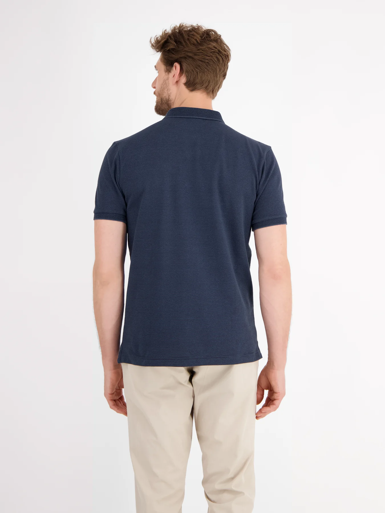 Lerros polo shirt with short sleeves, a colar and a piqué structure with stripes. The polo collar is finished with a button closure.