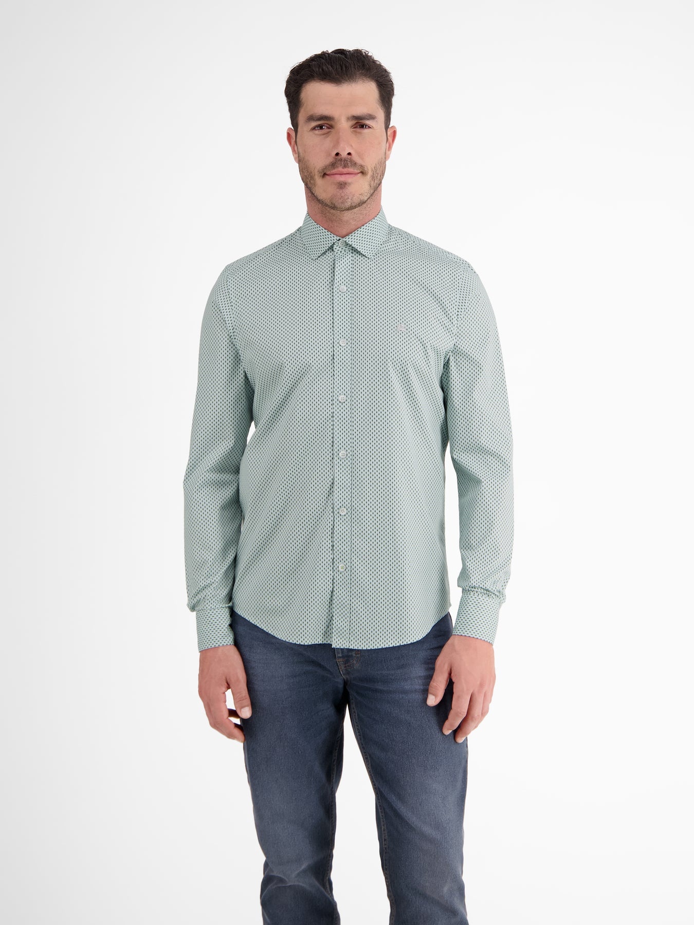 Lerros shirt with long sleeves, a collar and an allover print.