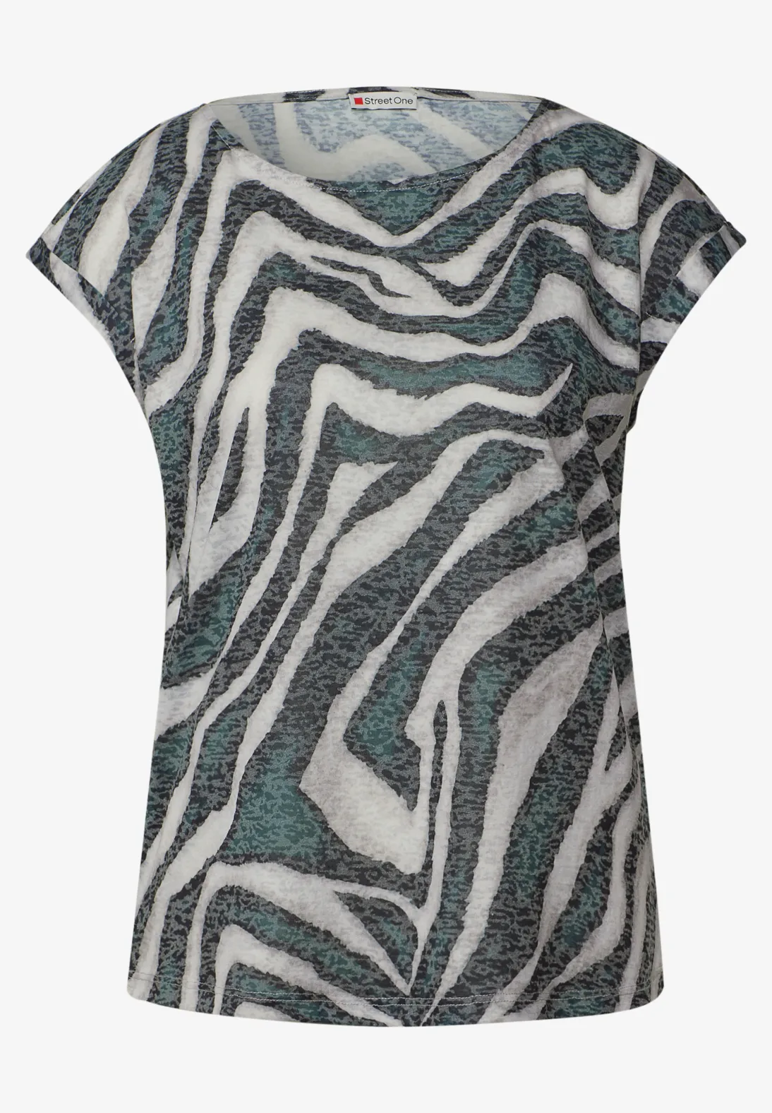 Street One shirt with short sleeves, a boat neckline and a graphic pattern with a slightly transparent look. This Street One shirt is made of a lightweight material mix.