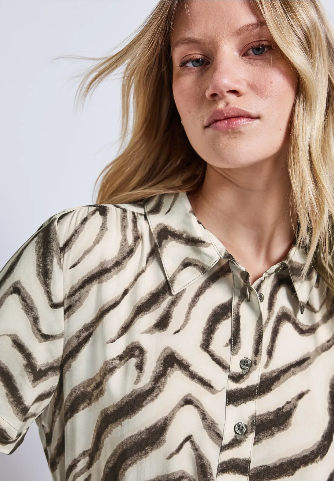 JeansSkirts/DressesCardigans/JumpersJackets/CoatsBlazersDescriptionPrinted Blouse Dress - Tumbled Beige