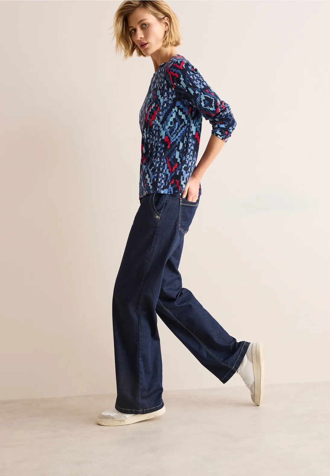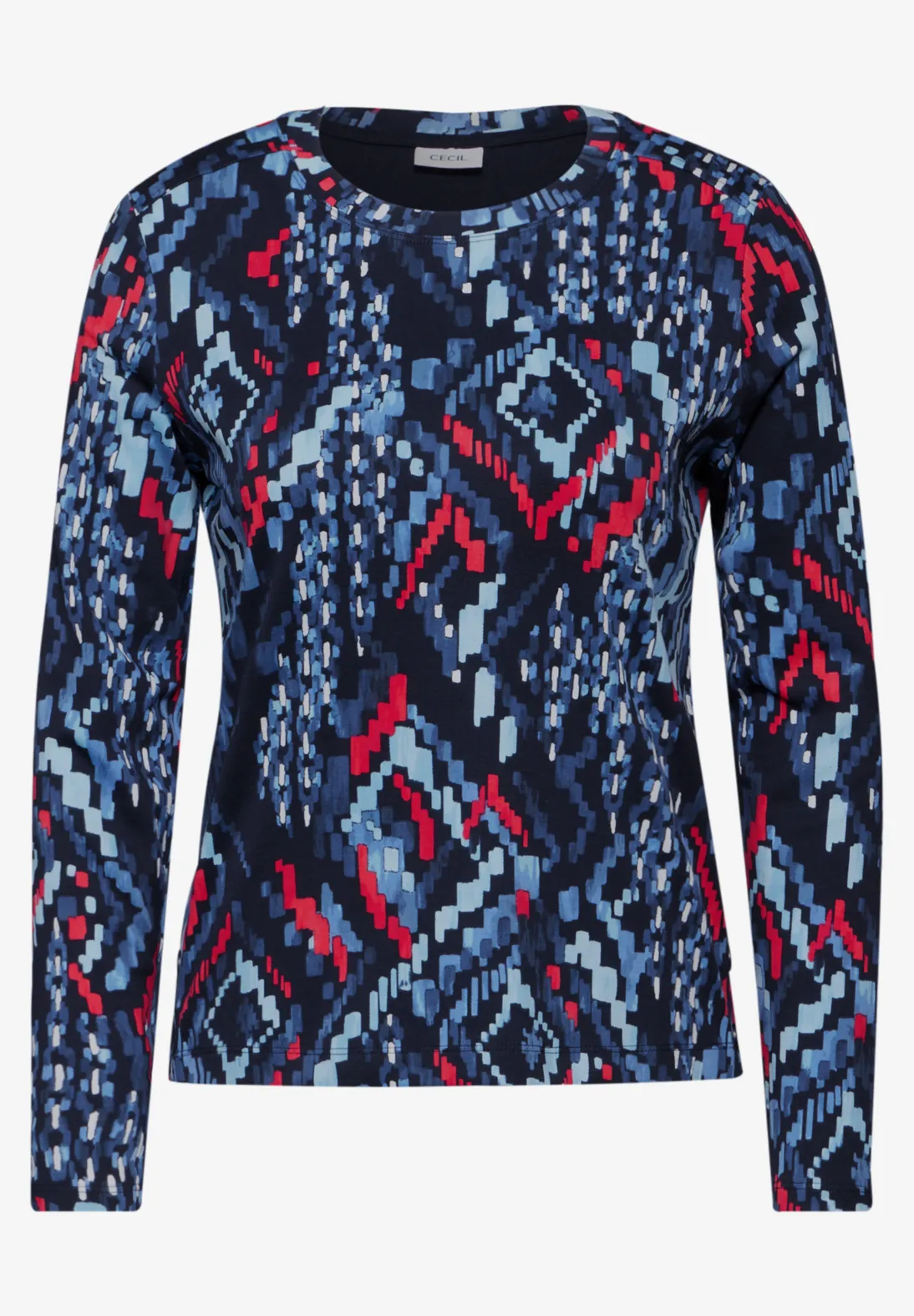 Cecil shirt with long sleeves, a round neckline and a graphic pattern. This Cecil shirt has button details on the side and is made of pure cotton.