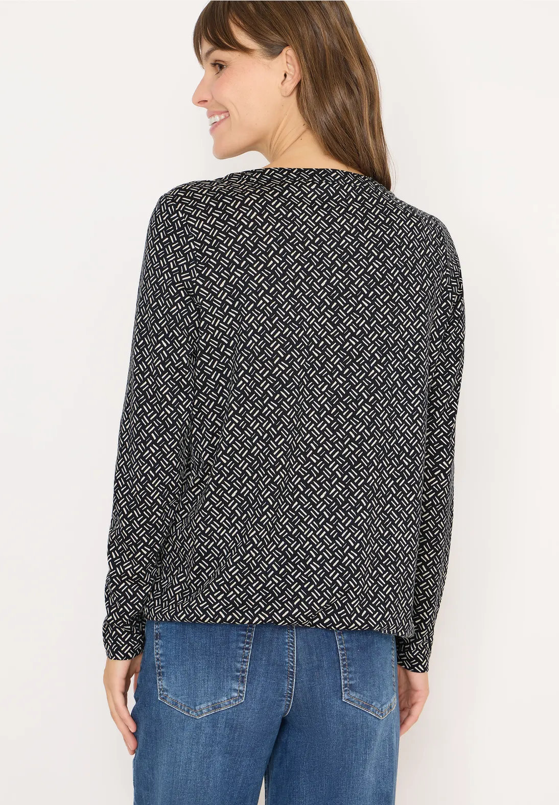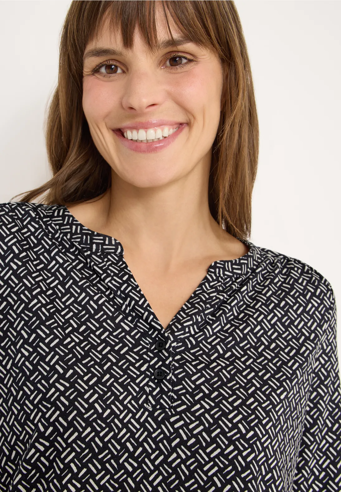 This CECIL women’s shirt in Light Greige features a subtle graphic pattern in soft neutral tones. With a split neckline and button detail, stretch hem, and long sleeves, it creates a feminine silhouette with lasting comfort. Made from a breathable 50% modal, 50% cotton blend for a soft and easy-to-wear feel. A timeless piece for everyday styling.
