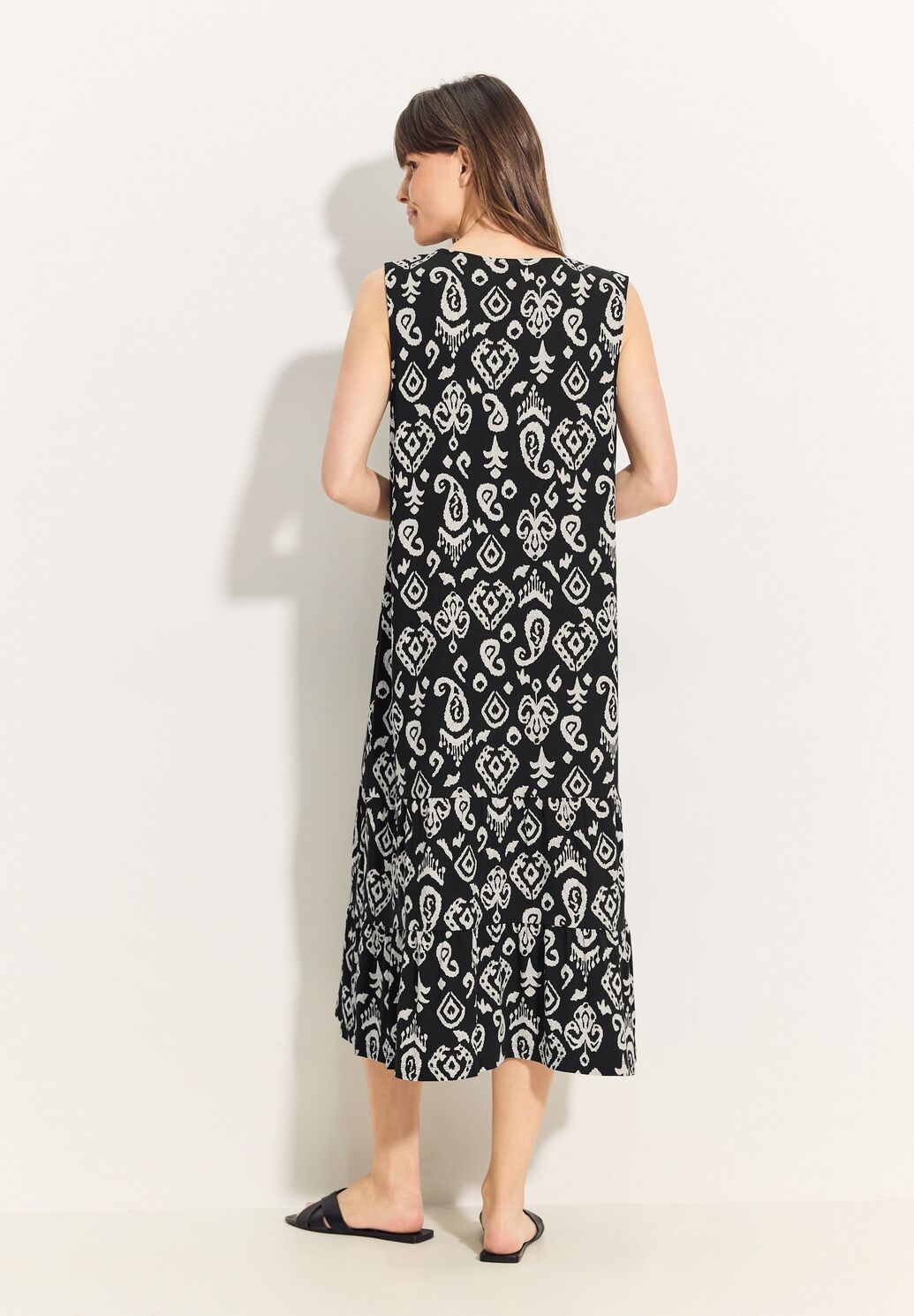 Sleeveless Cecil dress with a round neck with a V-slit and a flounce at the hem. This Cecil dress has an allover print and is made of a comfortable jersey quality.
