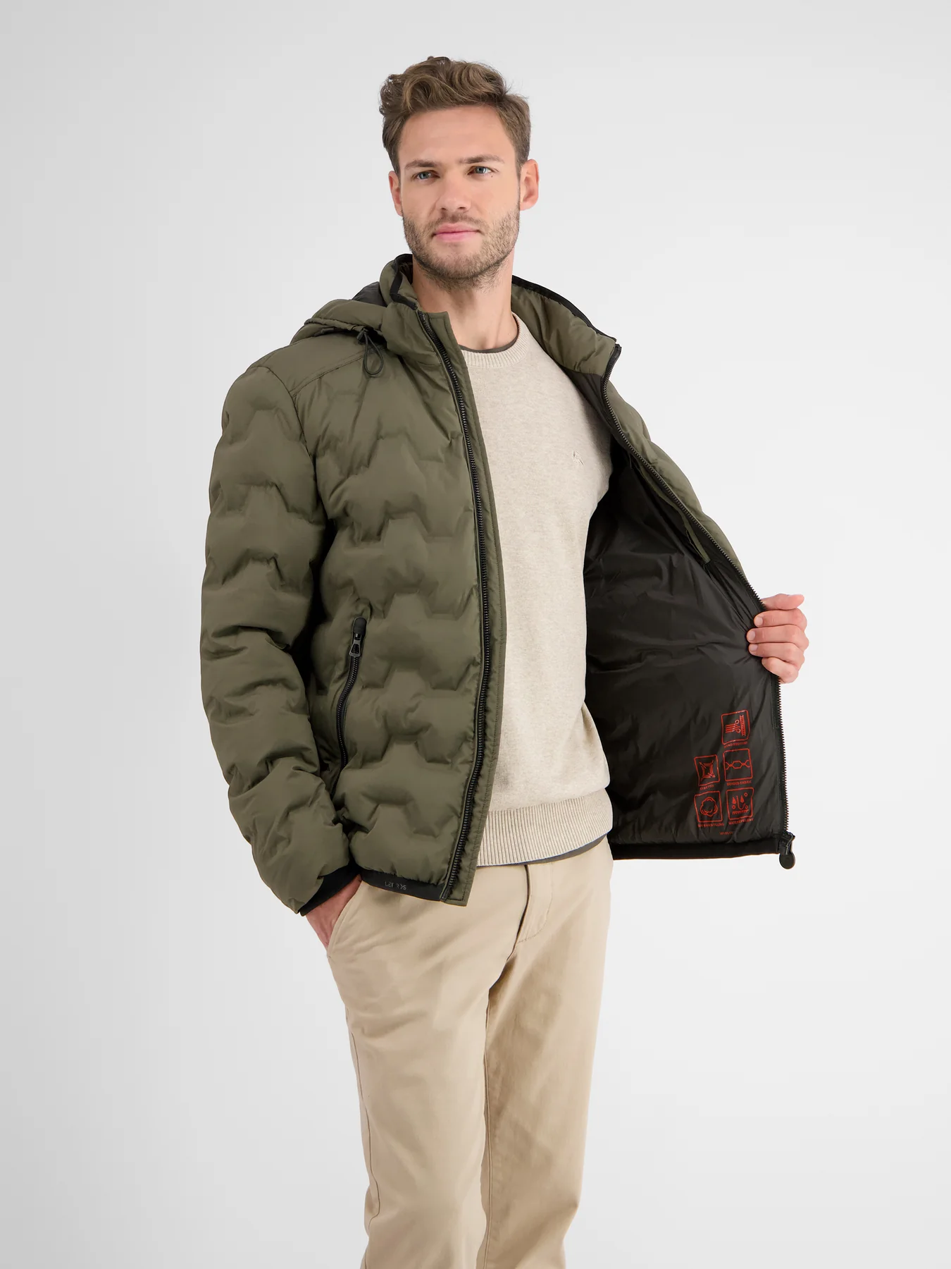 Lerros outdoor jacket with a detachable hood. This Lerros jacket has side pockets with a zipper and is finished with warm cuffs at the sleeves.