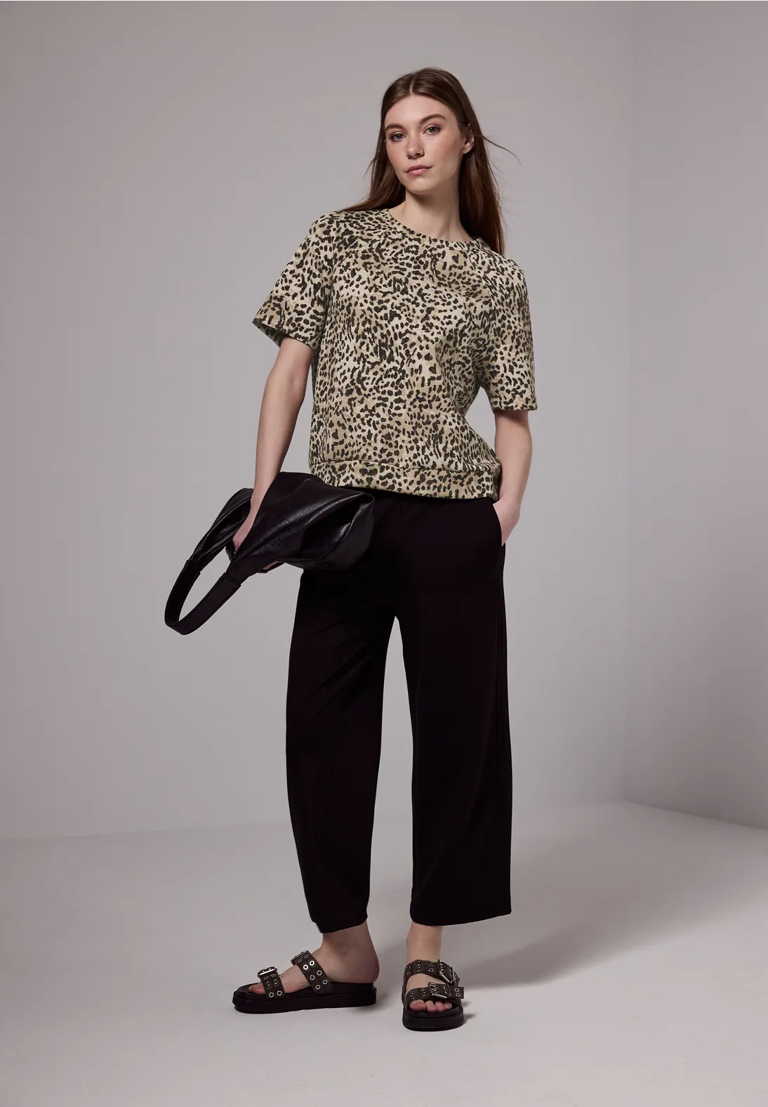 JeansSkirts/DressesCardigans/JumpersJackets/CoatsBlazersDescriptionRaglan Print T-Shirt Silk Look - Creamy Brown