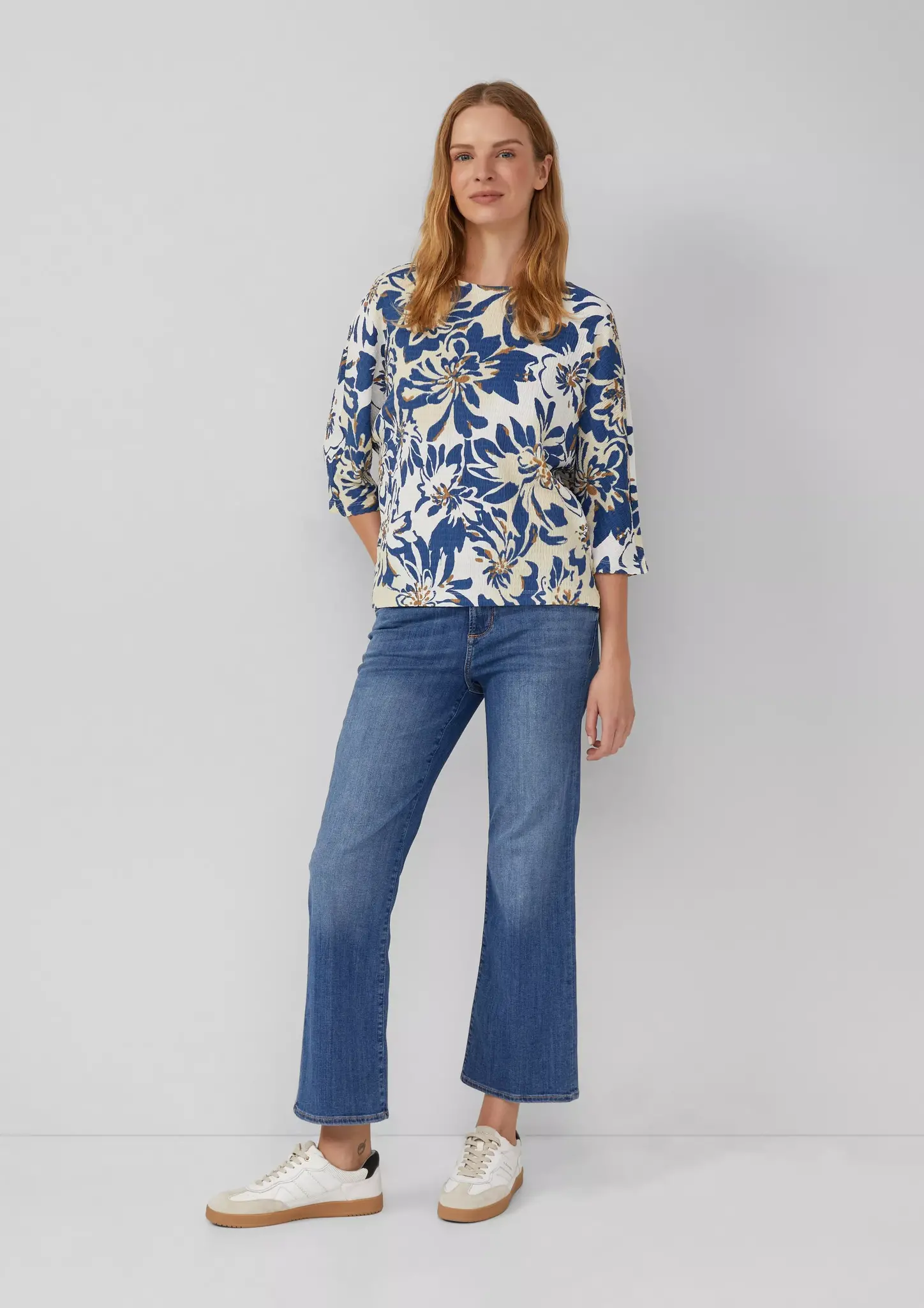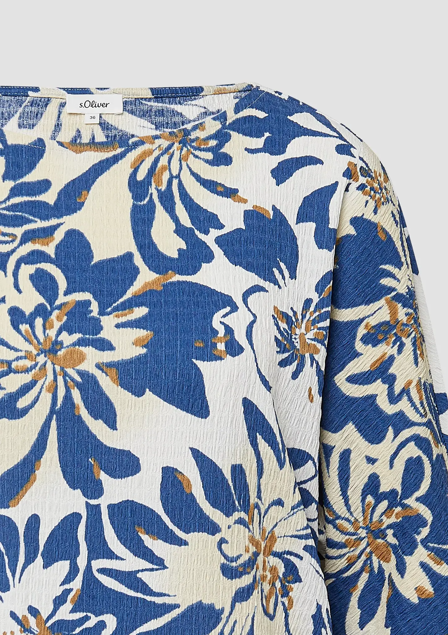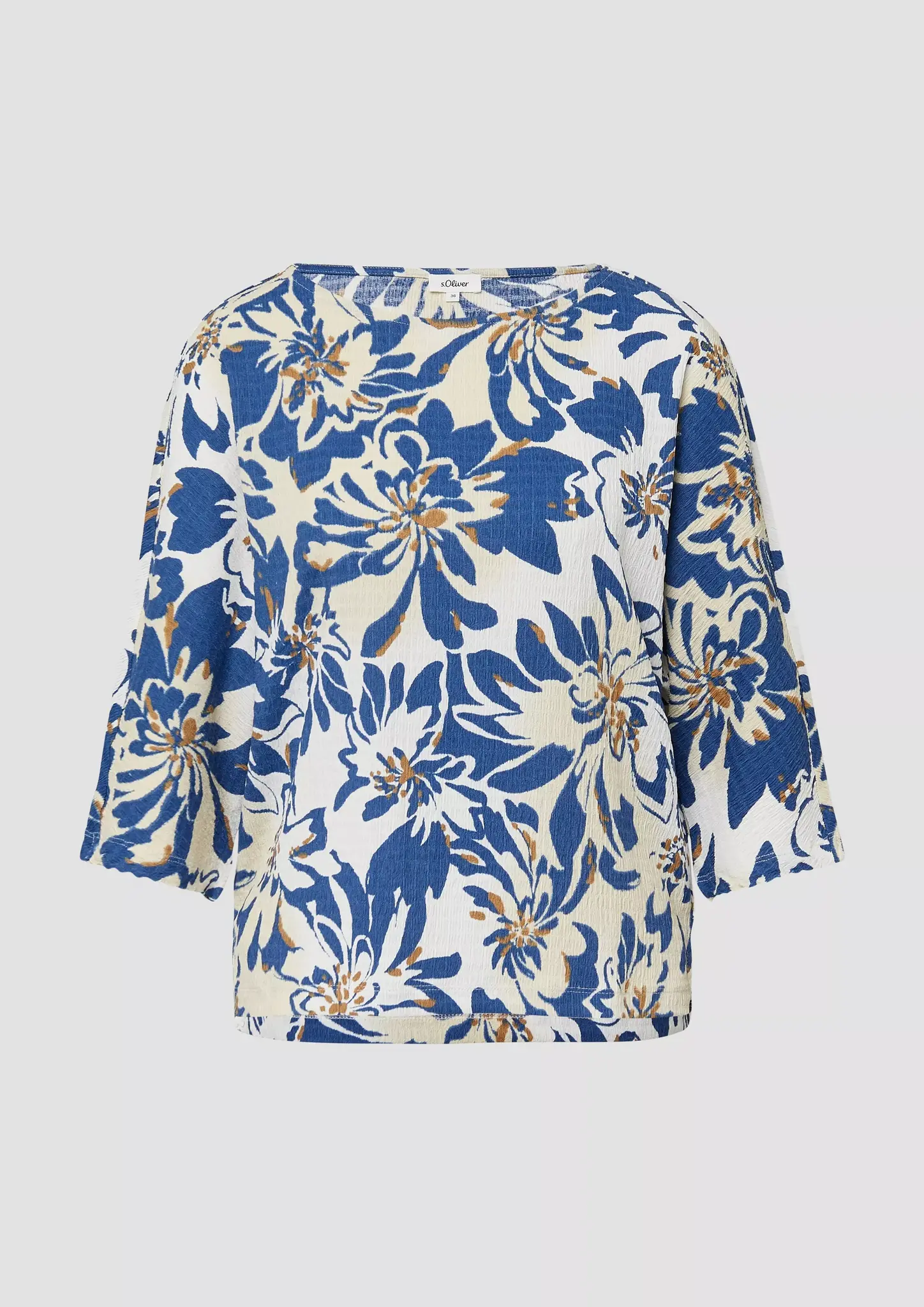 S. Oliver shirt with 3/4-length batwing sleeves, a round neckline and an allover print. This S. Oliver shirt has a relaxed fit and side slits at the hem.