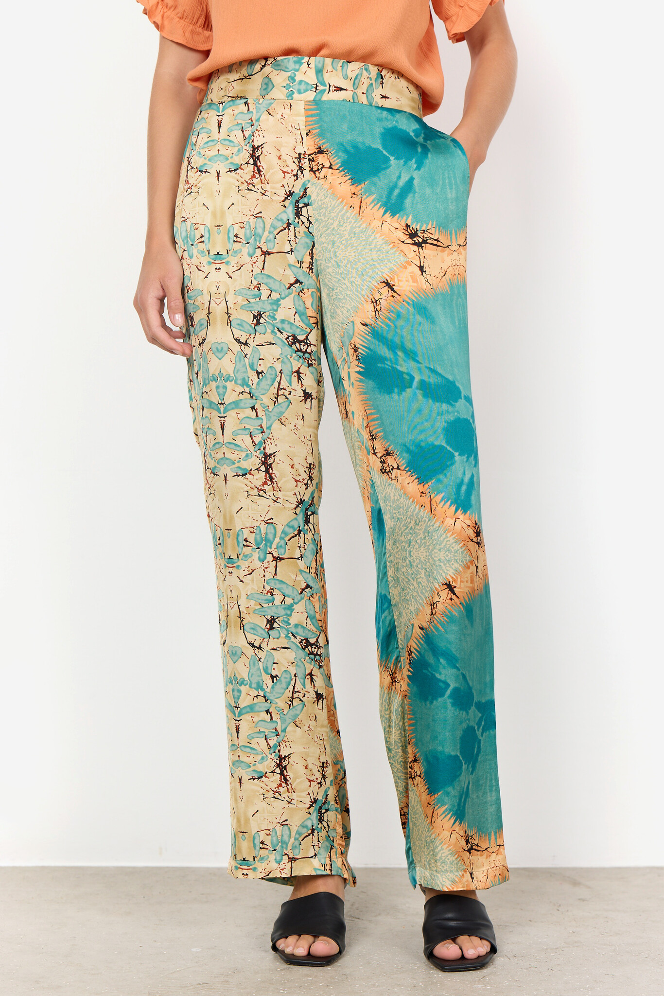 Soyaconcept SC-Emly 2-B. Soyaconcept pants with a casual fit, straight legs and an elastic waistband at the back. These Soyaconcept pants have side pockets and an allover print. Made from sustainable viscose with a satin look.