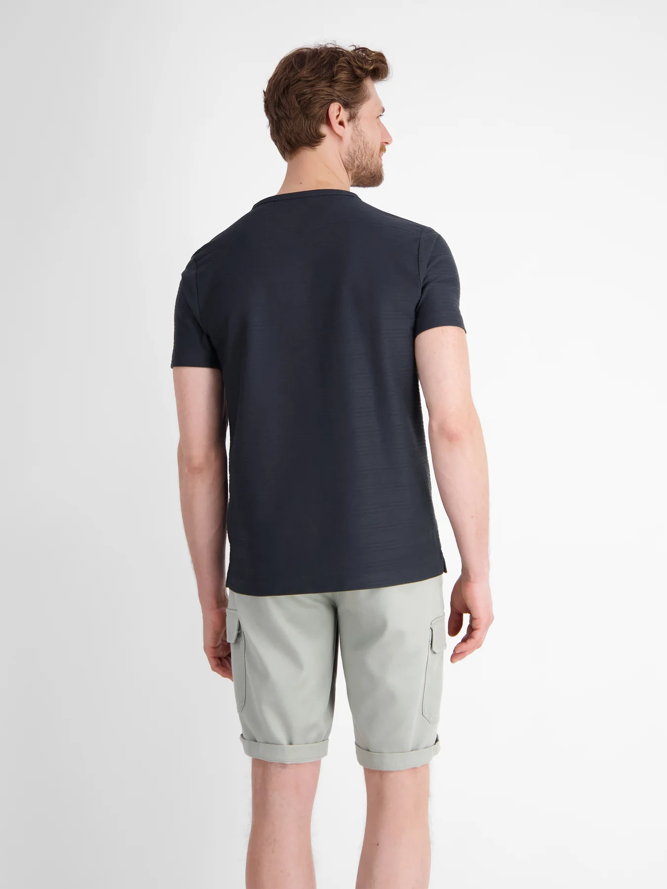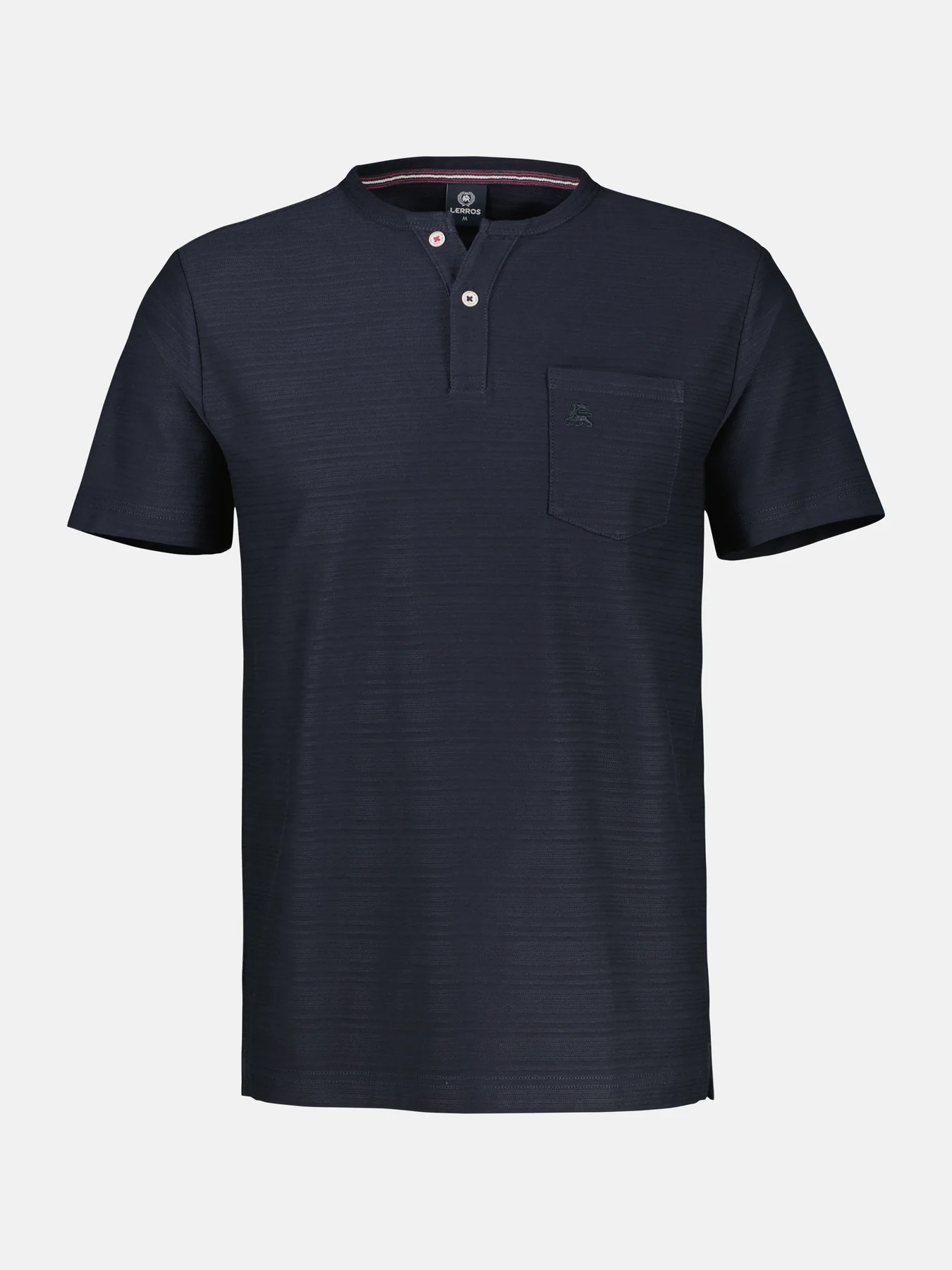 Lerros serafino shirt with short sleeves, a round neckline and structured stripes.