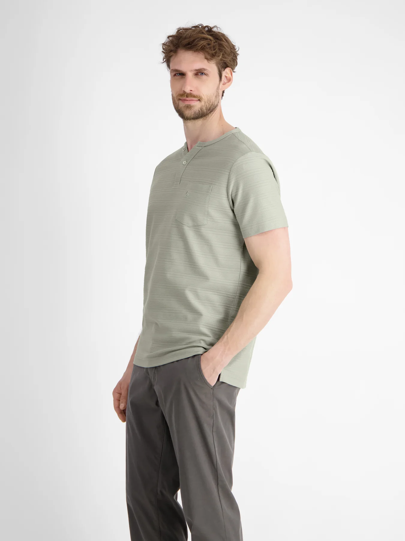 Lerros serafino shirt with short sleeves, a round neckline and structured stripes.