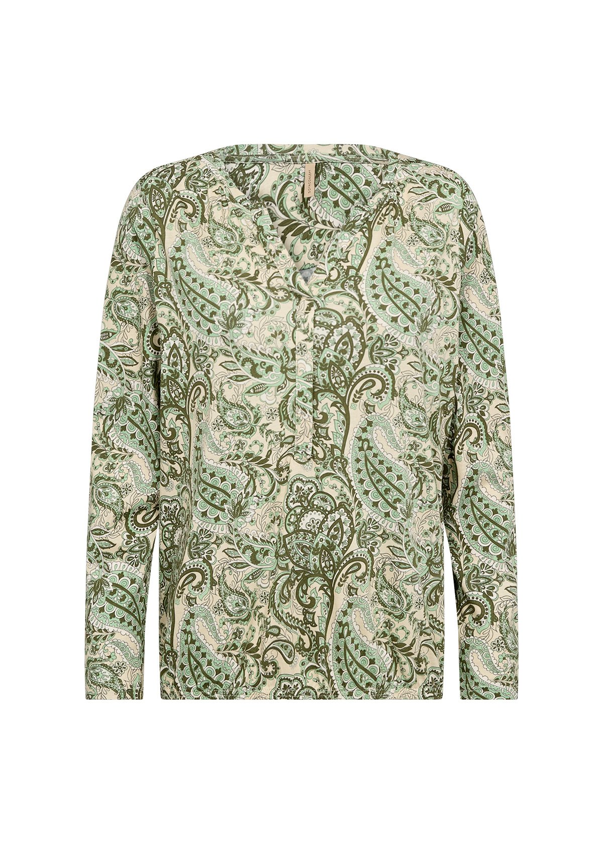 SC-Felicity AOP 446. Soyaconcept shirt with a round neckline with V-slit, long sleeves and an allover print. The loose model with elastic hem provides a sporty accent. Made from a comfortable mix of organic cotton and viscose.