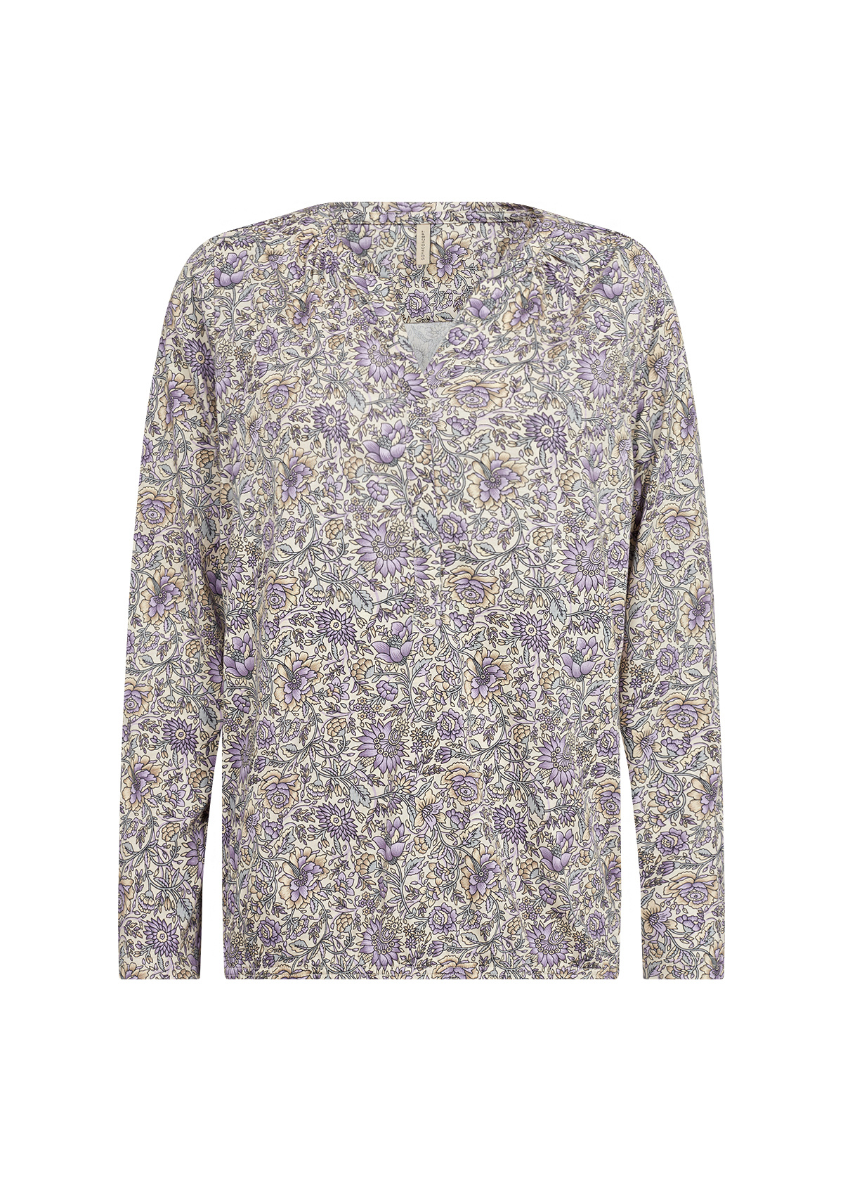 SC-Felicity AOP 447. Soyaconcept shirt with a round neckline with V-slit, long sleeves and an allover print. The loose model with elastic hem provides a sporty accent. Made from a comfortable mix of organic cotton and viscose.