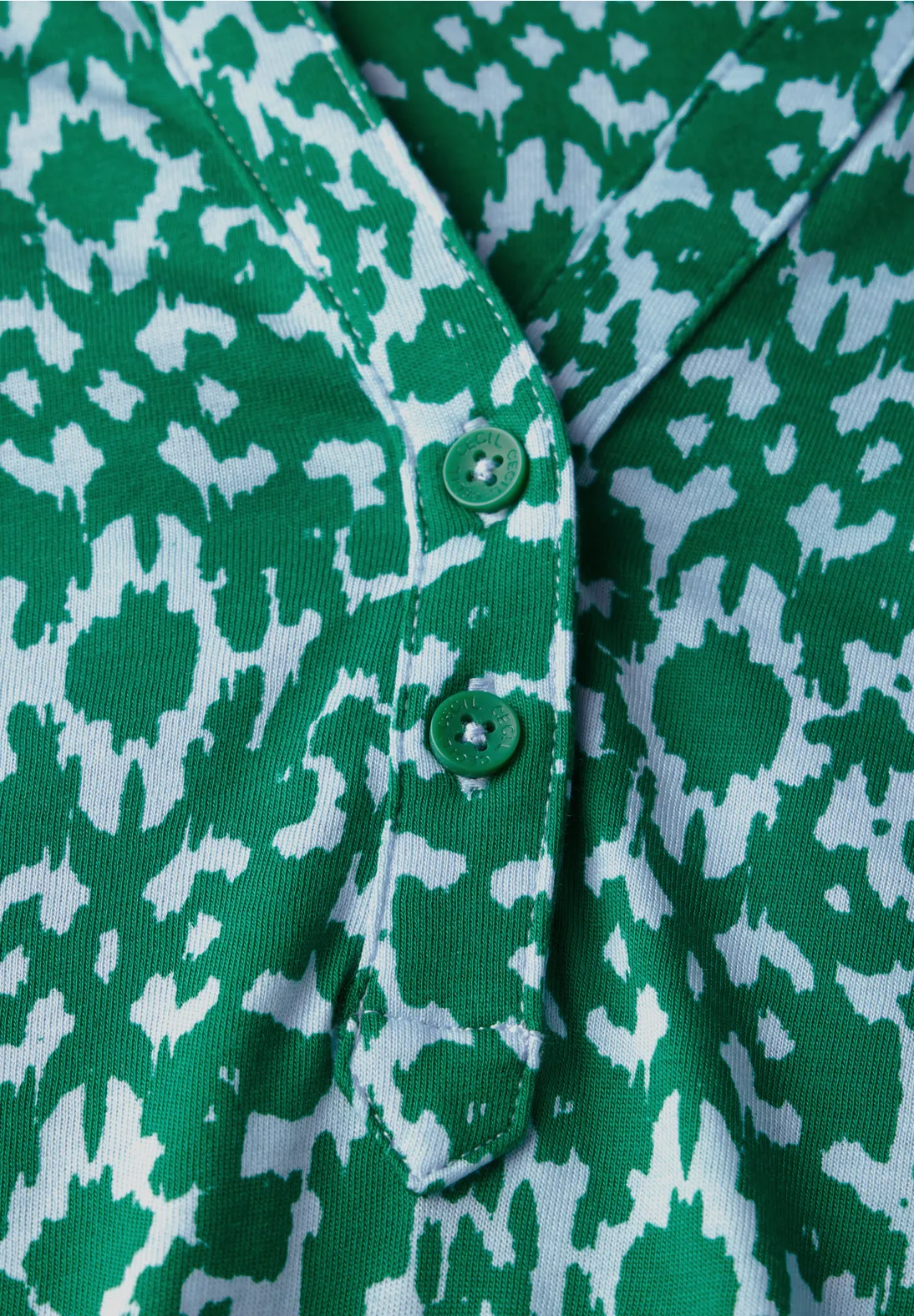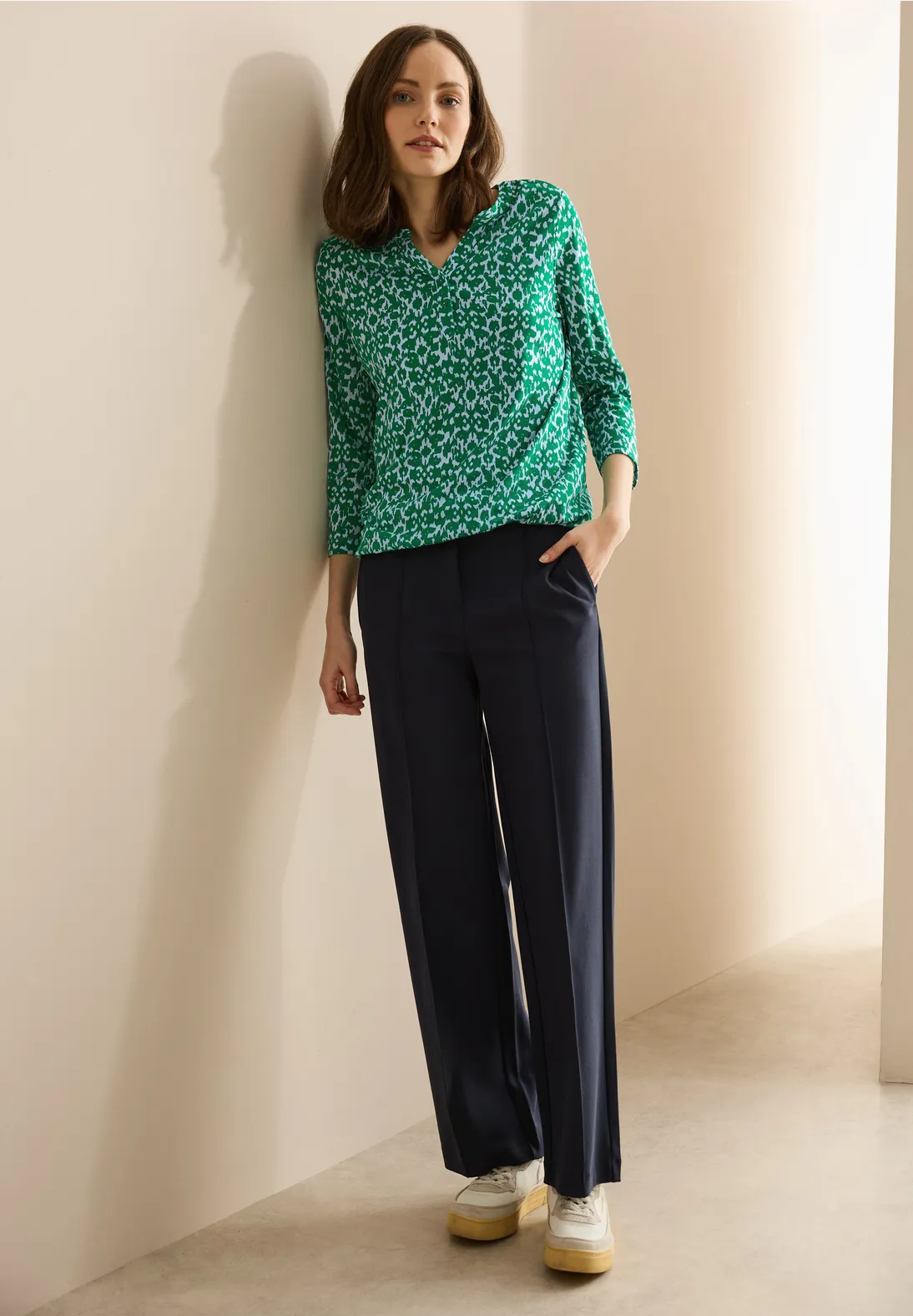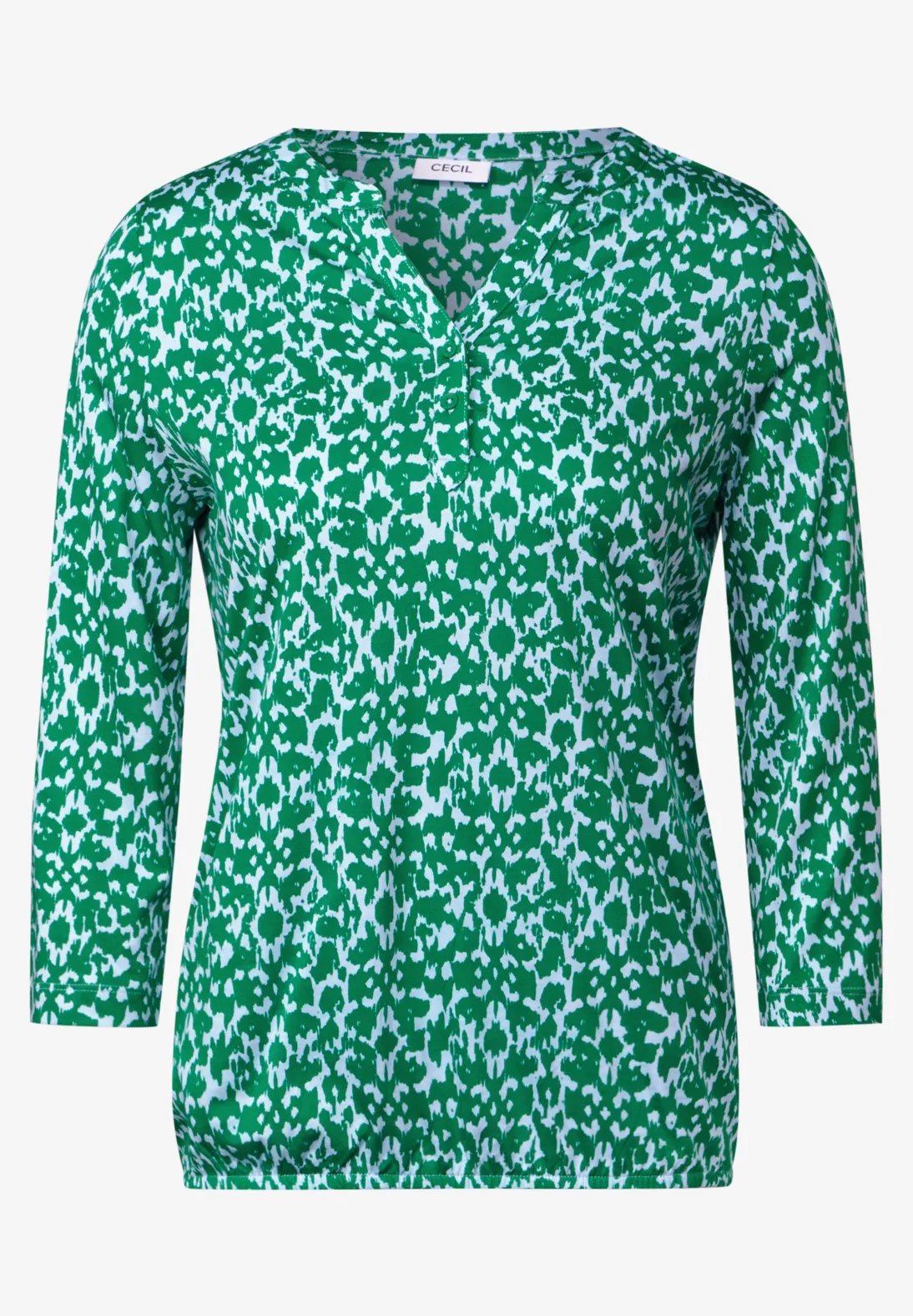 Cecil shirt with 3/4 sleeves, a round neckline with V-slit and an elastic hem. This Cecil shirt has an allover print and is made of a soft cotton-modal mix.