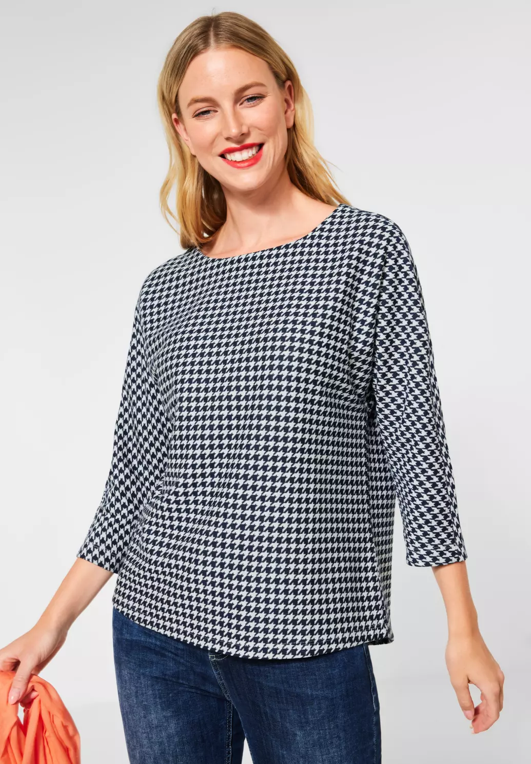 Street One jacquard shirt with 3/4-sleeves, a round neckline and an allover print. This Street One shirt has a comfortable fit.