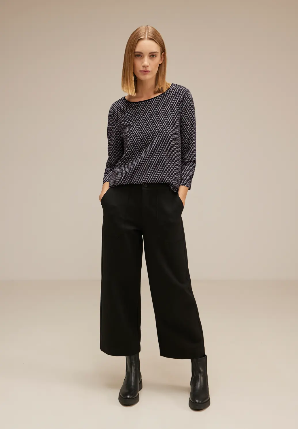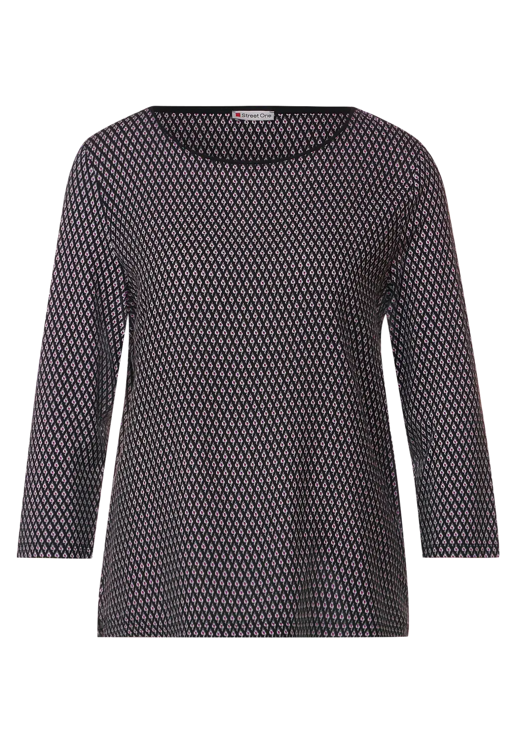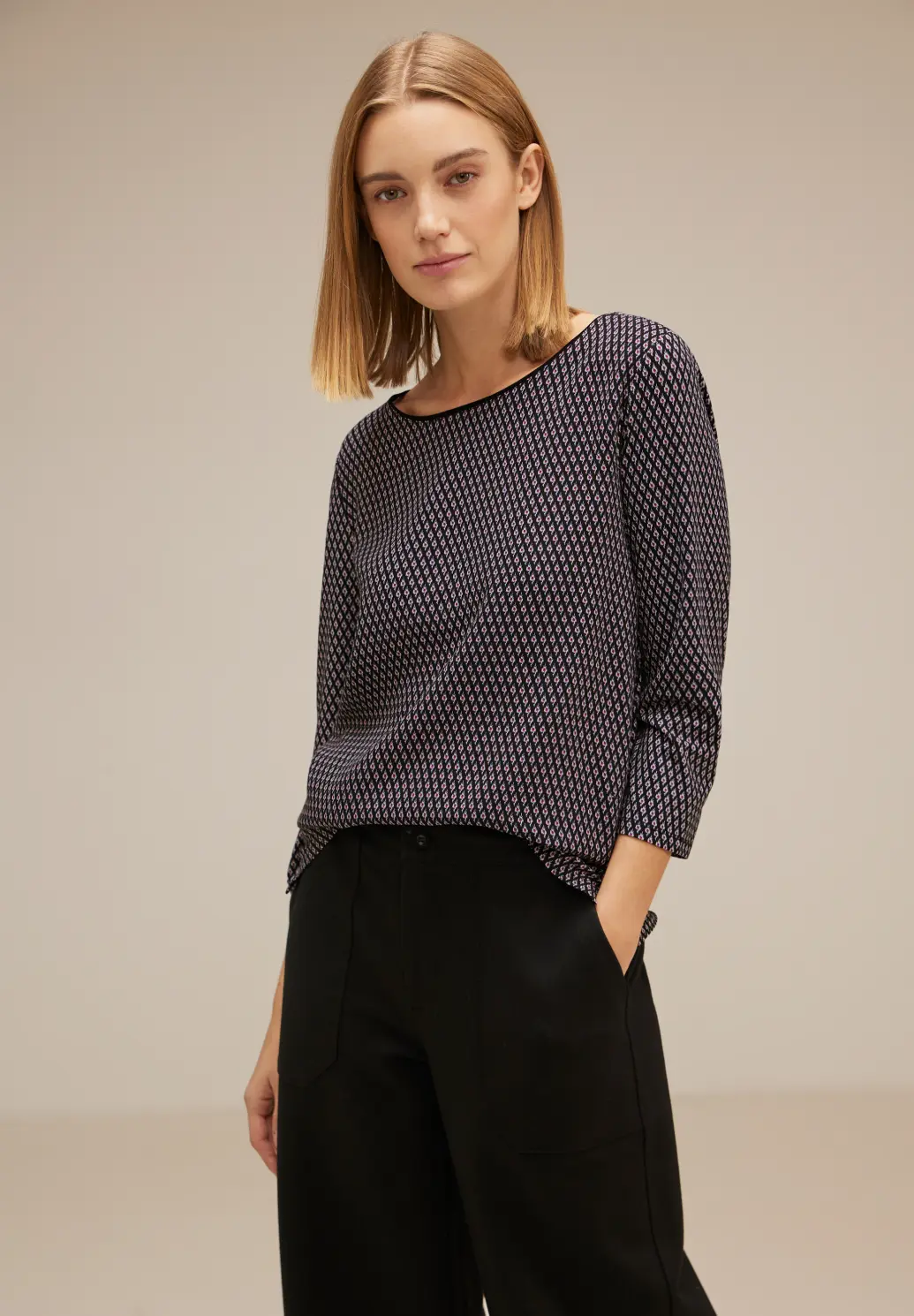 Street One Evi. Street One shirt with 3/4-sleeves, a boat neckline and an allover print. This Street One shirt has a woven front and a comfortable jersey back.