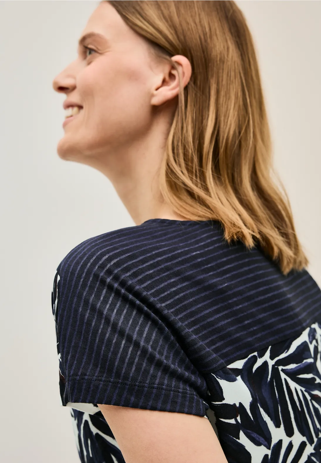 Cecil shirt with short sleeves, a round neckline and a graphic print with burn-out look details.